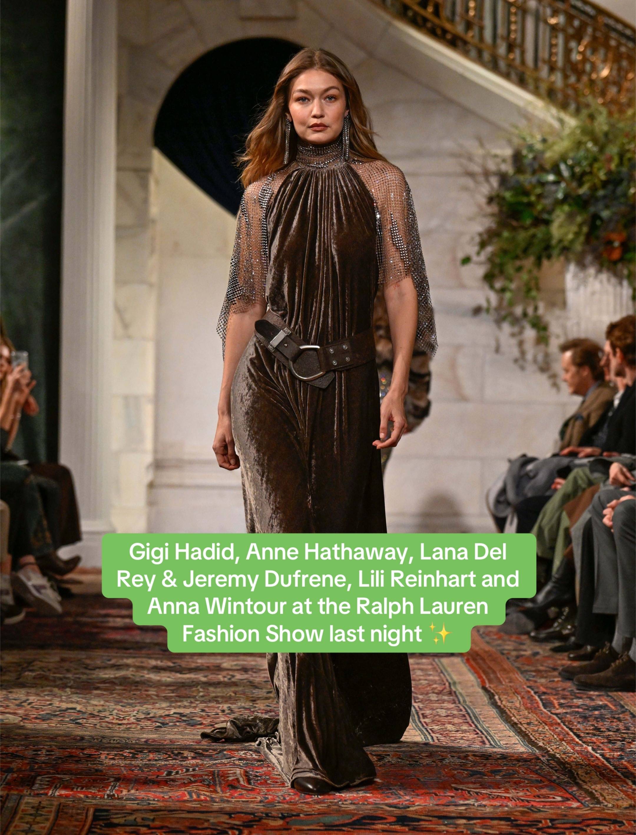 Gigi Hadid, Anne Hathaway, Lana Del Rey & Jeremy Dufrene, Lili Reinhart and Anna Wintour at the Ralph Lauren Fashion Show last night ✨