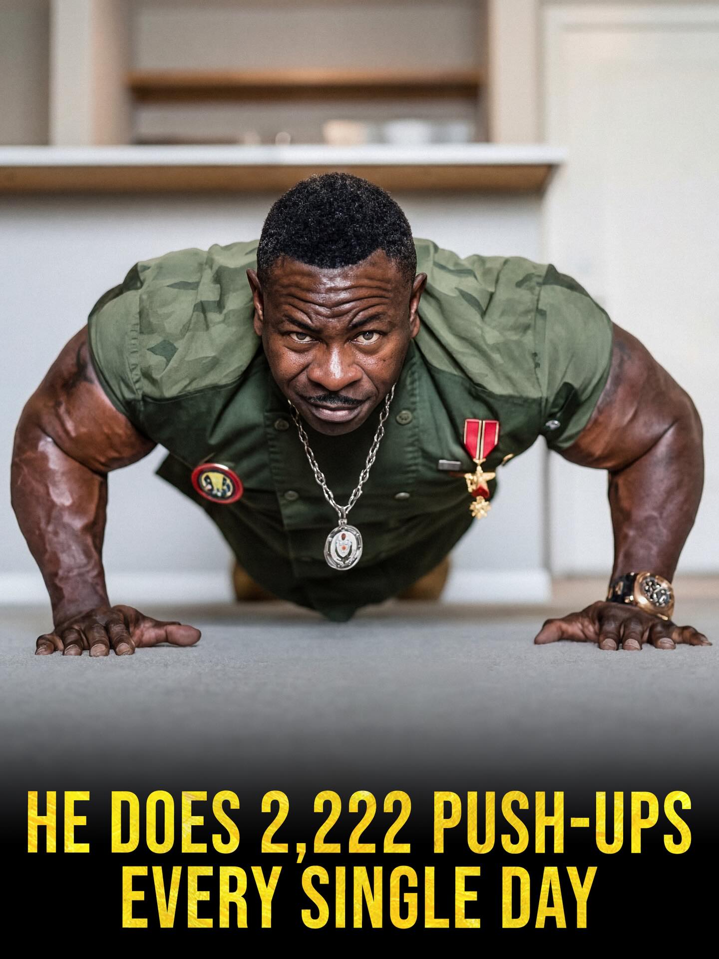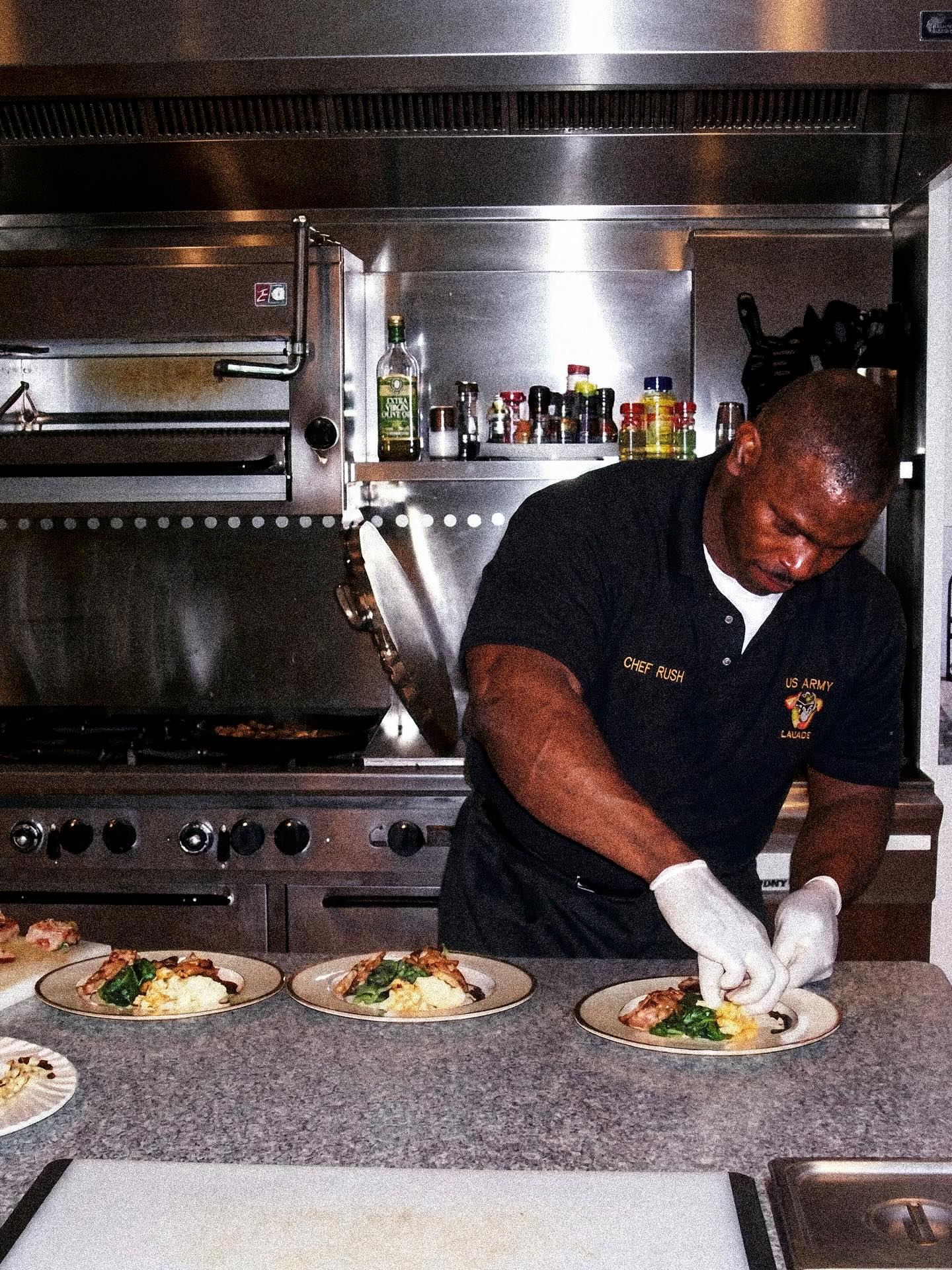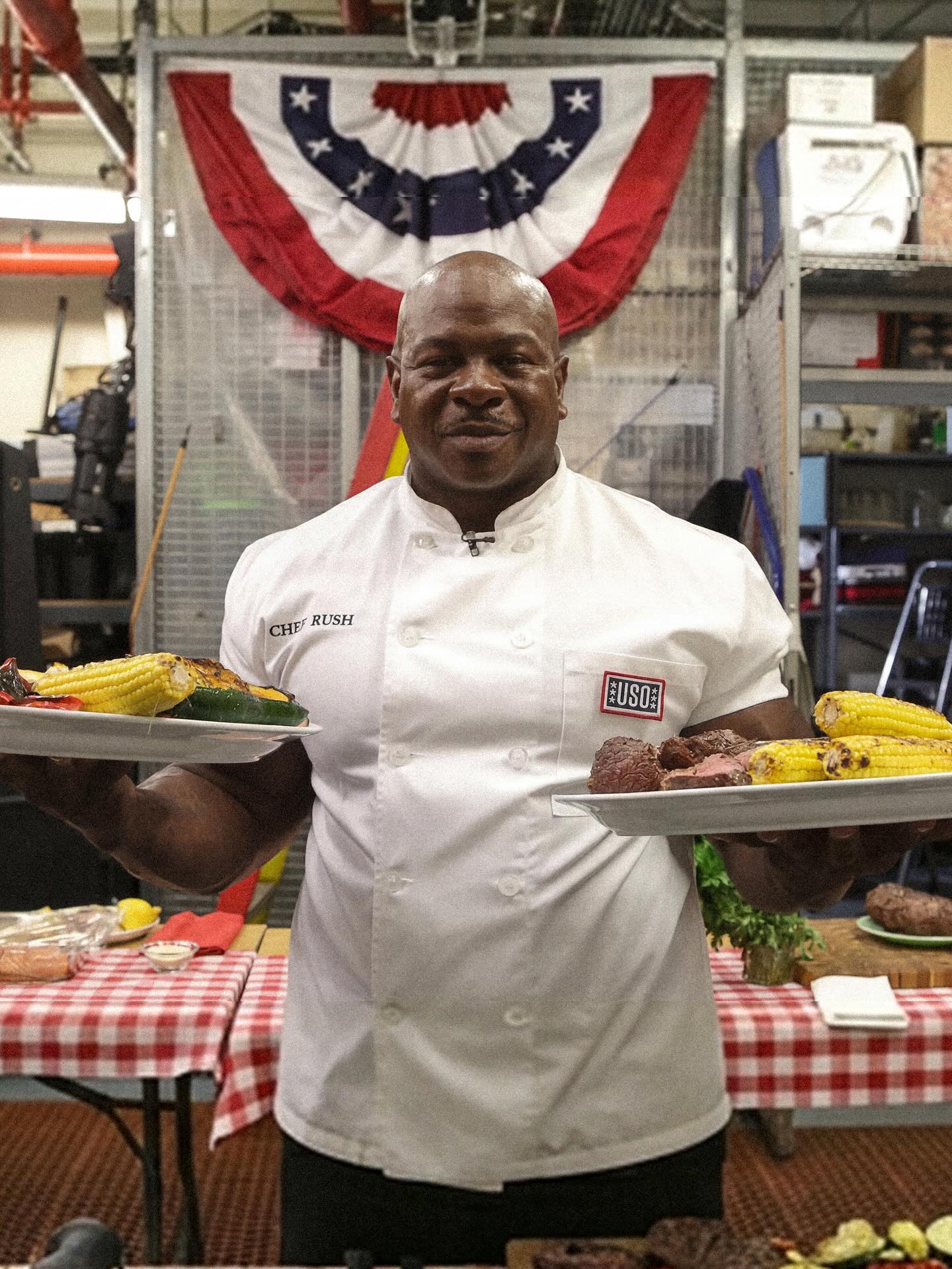 Andre Rush is a former White House chef and Army veteran whose profile spread far beyond the kitchen. The 2,222 daily push-ups, 24-inch biceps, and 700-pound bench press image made him part chef, part soldier, part motivational figure.
