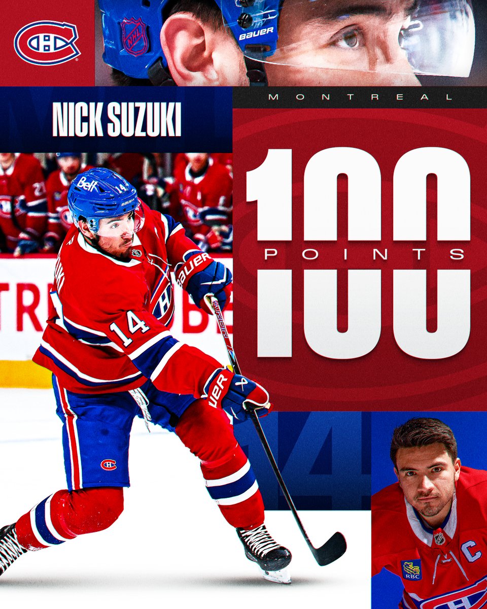 SUZUKI x 100 π Nick Suzuki becomes just the fifth player in @CanadiensMTL history to record a 100-point campaign and the first since Mats Naslund in 1985-86! π₯