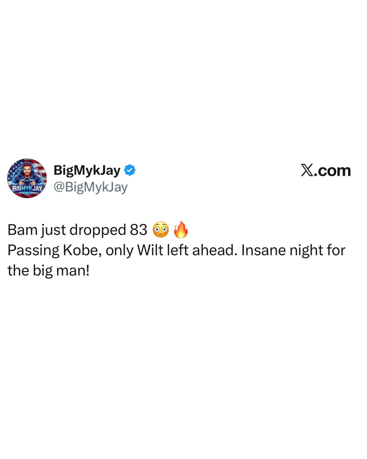 Bam Adebayo just dropped 83 points, passing Kobe Bryant for the second-most points ever scored in an NBA game.