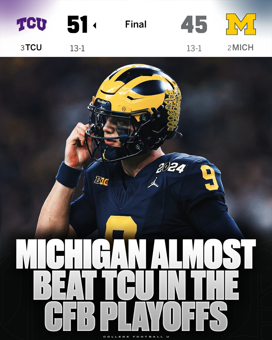 • The Wolverines would lose by 6 vs TCU in the CFP semis
