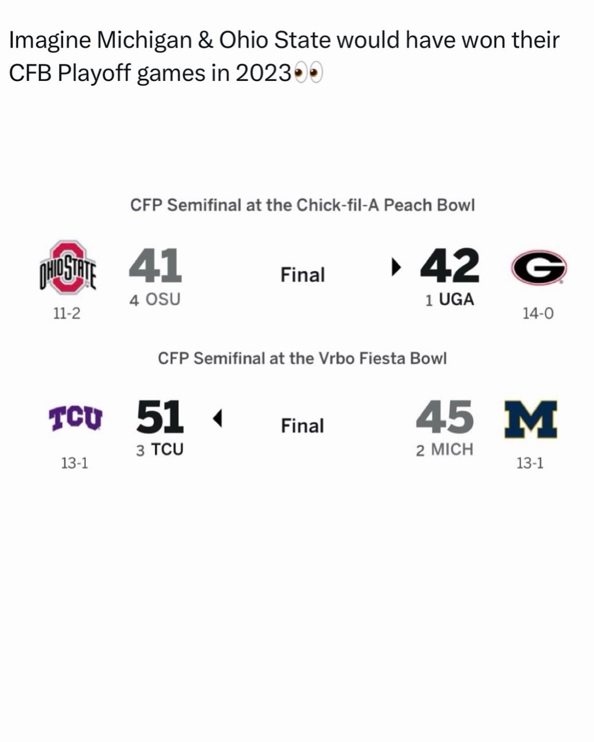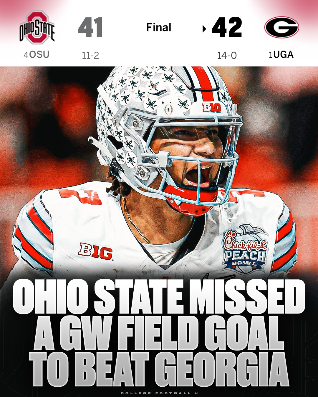 • The Buckeyes would lose by 1 vs UGA in the CFP semis