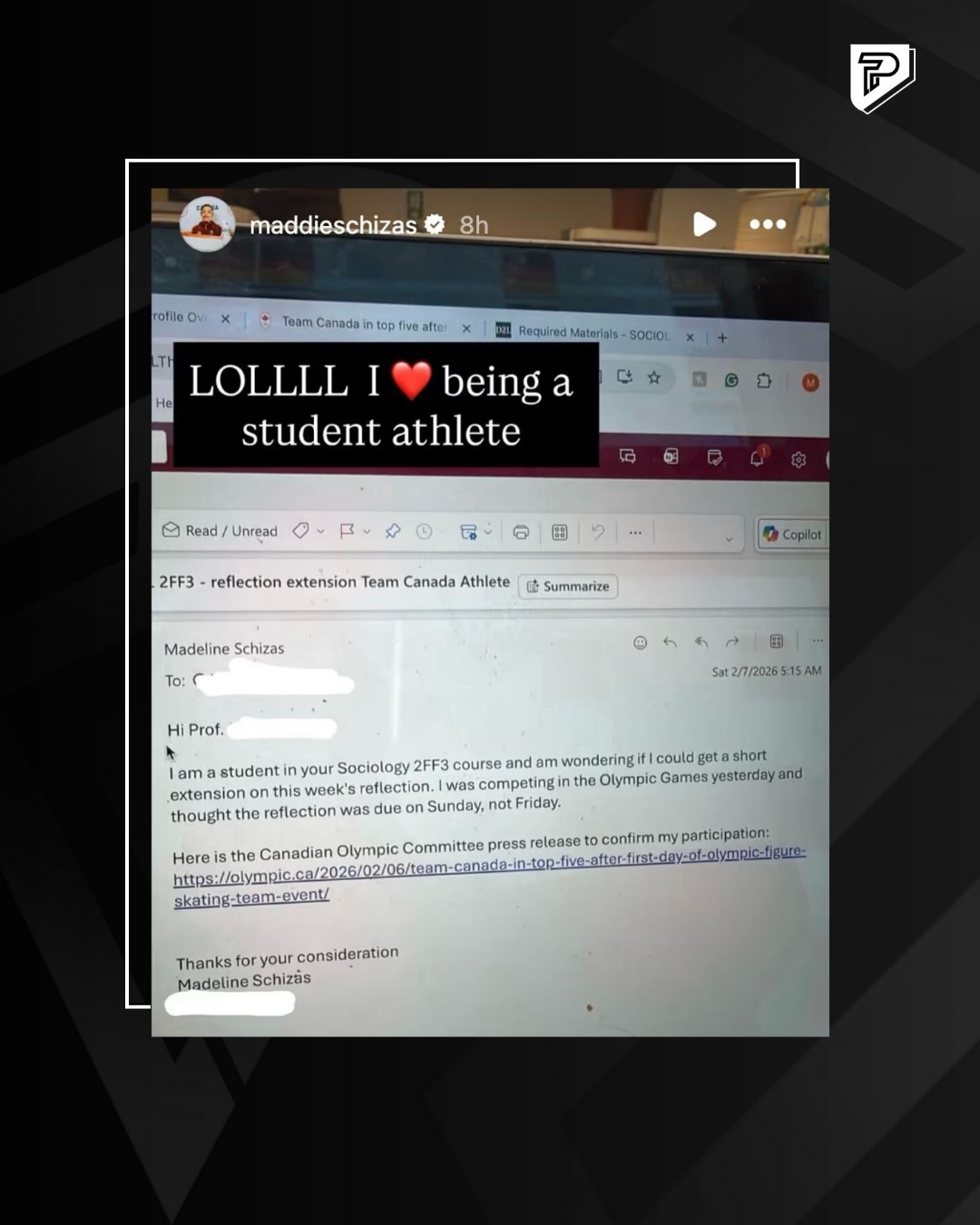 McMaster University student Madeline Schizas asked for a homework extension so she could represent Canada at the 2026 Winter Olympics.
