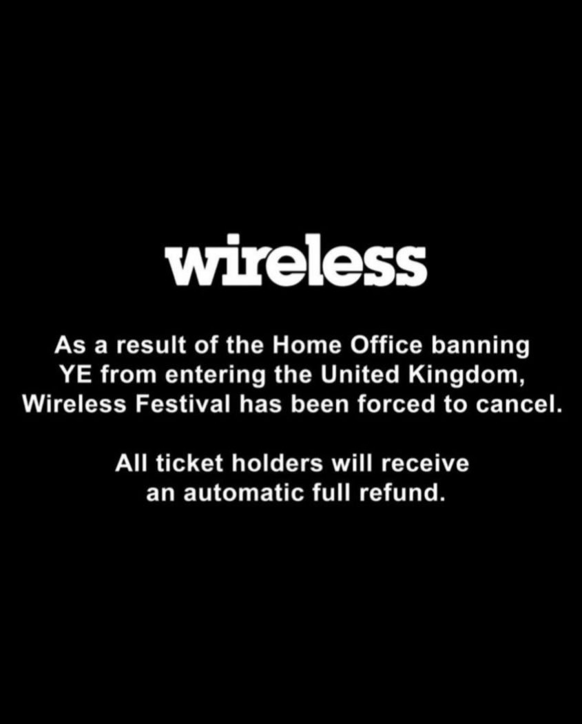 Wireless Festival was cancelled in its entirety earlier this morning.