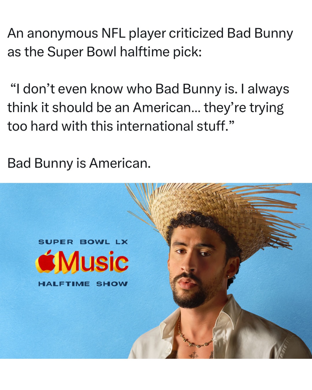 The display comes as NFL commissioner Roger Goodell says Bad Bunny’s halftime show will “unite” the country, after President Donald Trump said the performance would “sow hatred.”