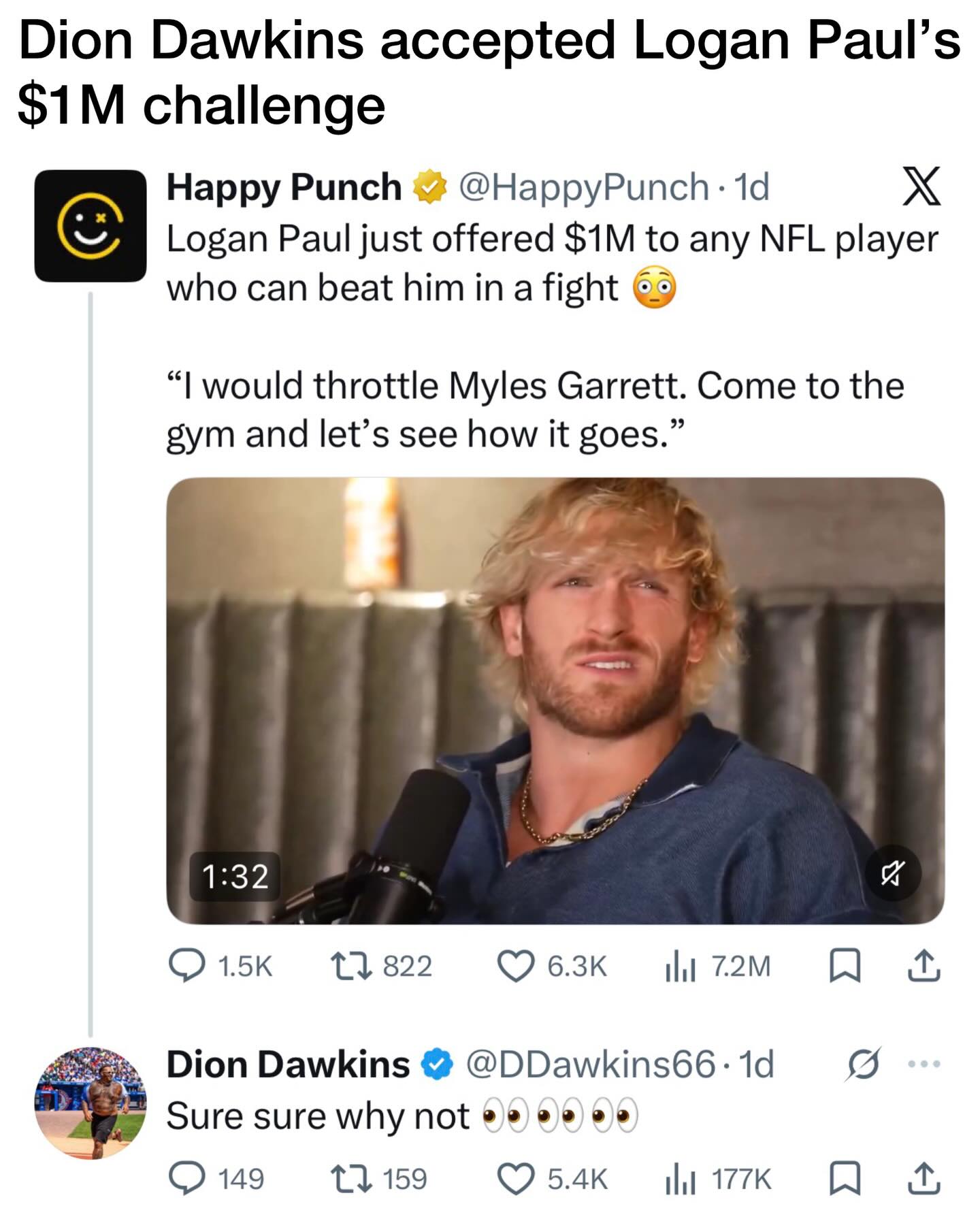 Bills star OL Dion Dawkins accepts Logan Paulโs $1 MILLION challenge to beat him in a fight.