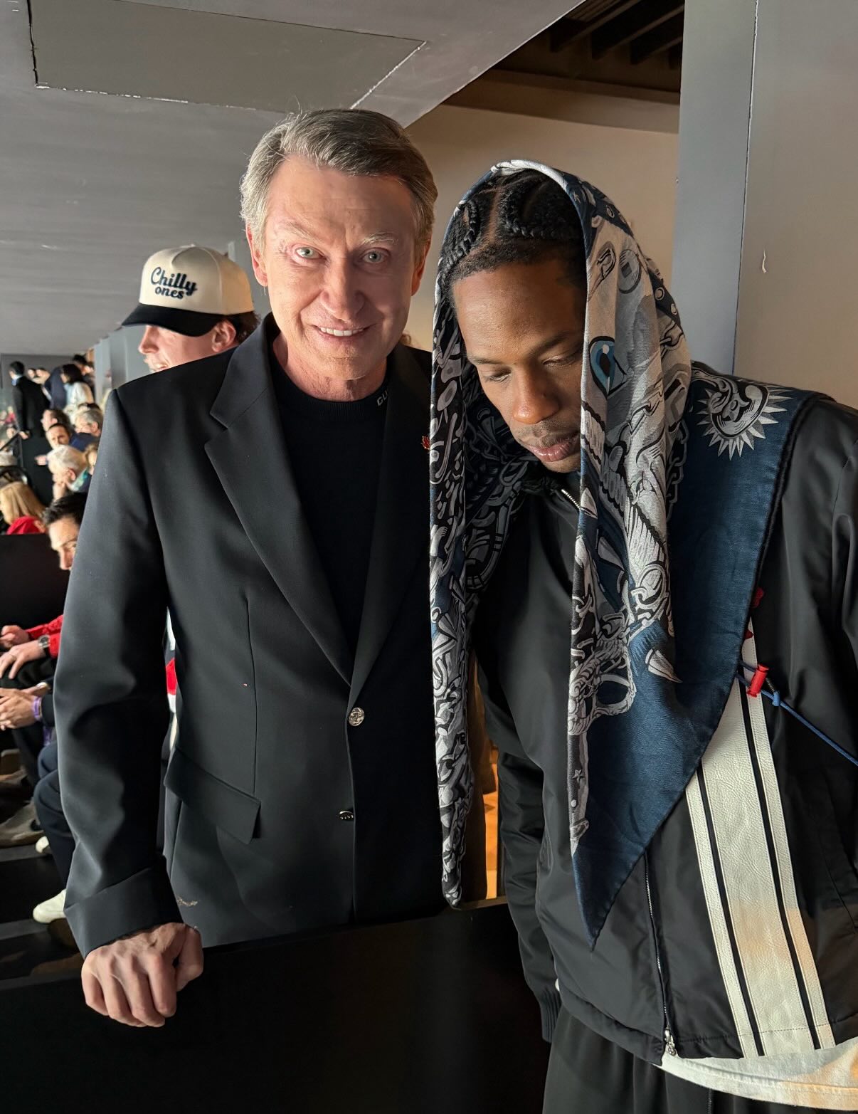 Travis Scott linked up with Canadian hockey legend Wayne Gretzky at today’s Olympic gold medal game 👀🥇