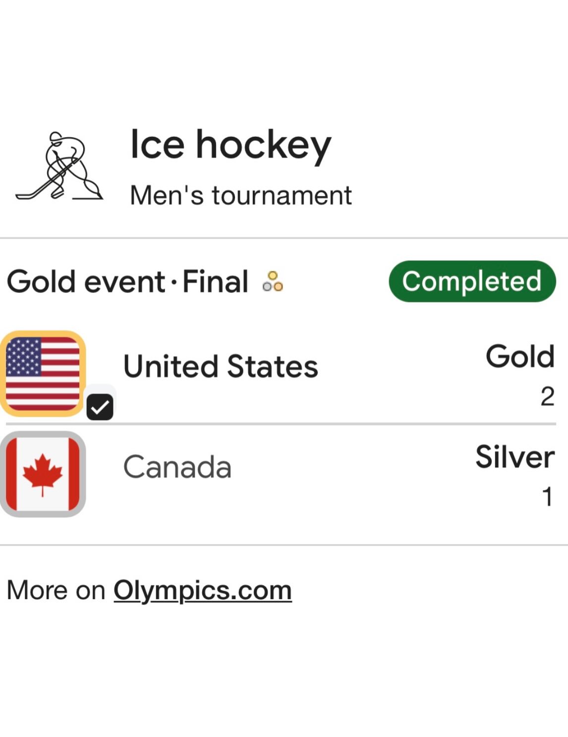 Team USA secured its first men’s Olympic hockey gold since 1980, defeating Canada 2–1 in a historic win 🇺🇸🥇