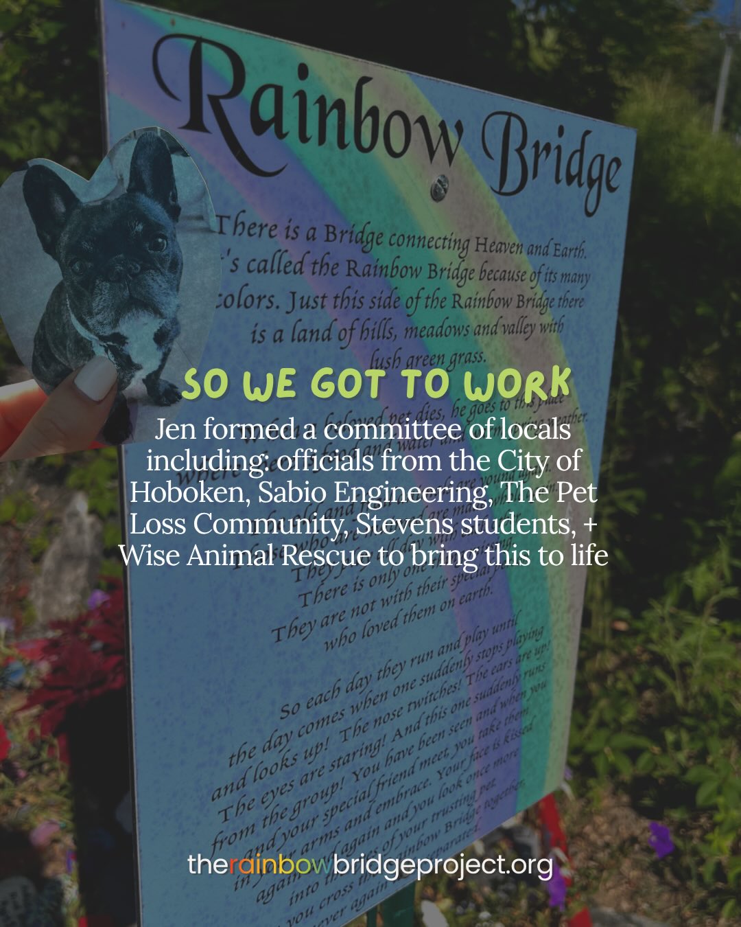 Hello 🌈 we wanted to share a bit more about our project: The Hoboken Rainbow Bridge memorial is in the works for Hoboken, bringing a meaningful new space for the community to honor beloved pets who have passed ⛅️