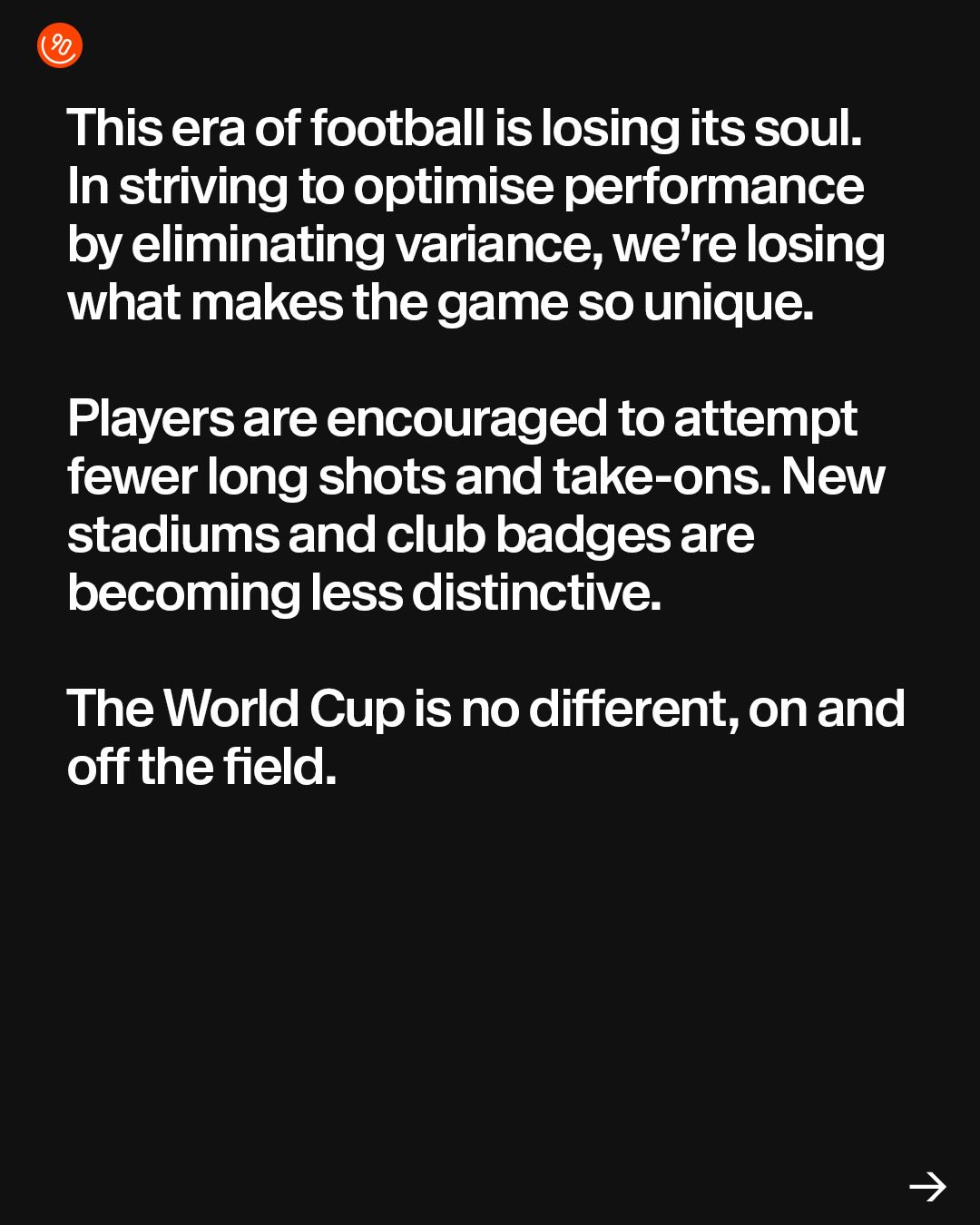 Football shouldn’t always look the same, it should be varied and unpredictable. There’s no greater stage than World Cup to show what that should look like.