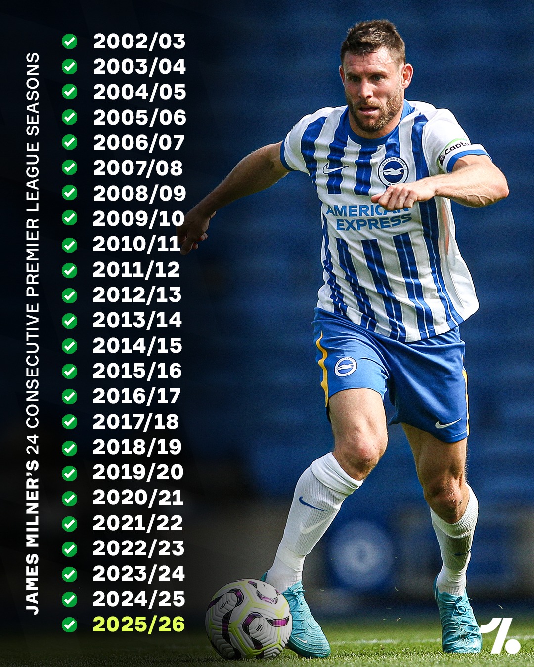 The Brighton man has further secured his legendary status by still going strong at 40 years of age, playing in his 24th season running ๐ฎโ๐จ