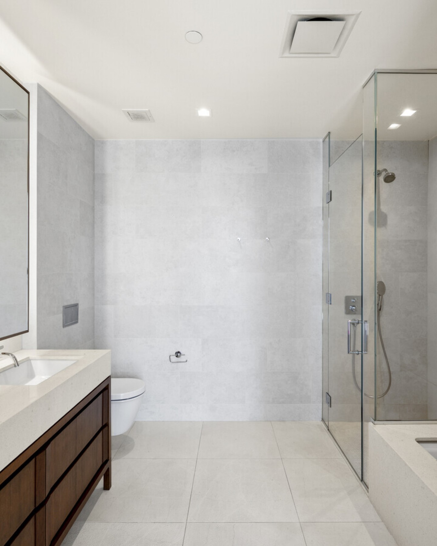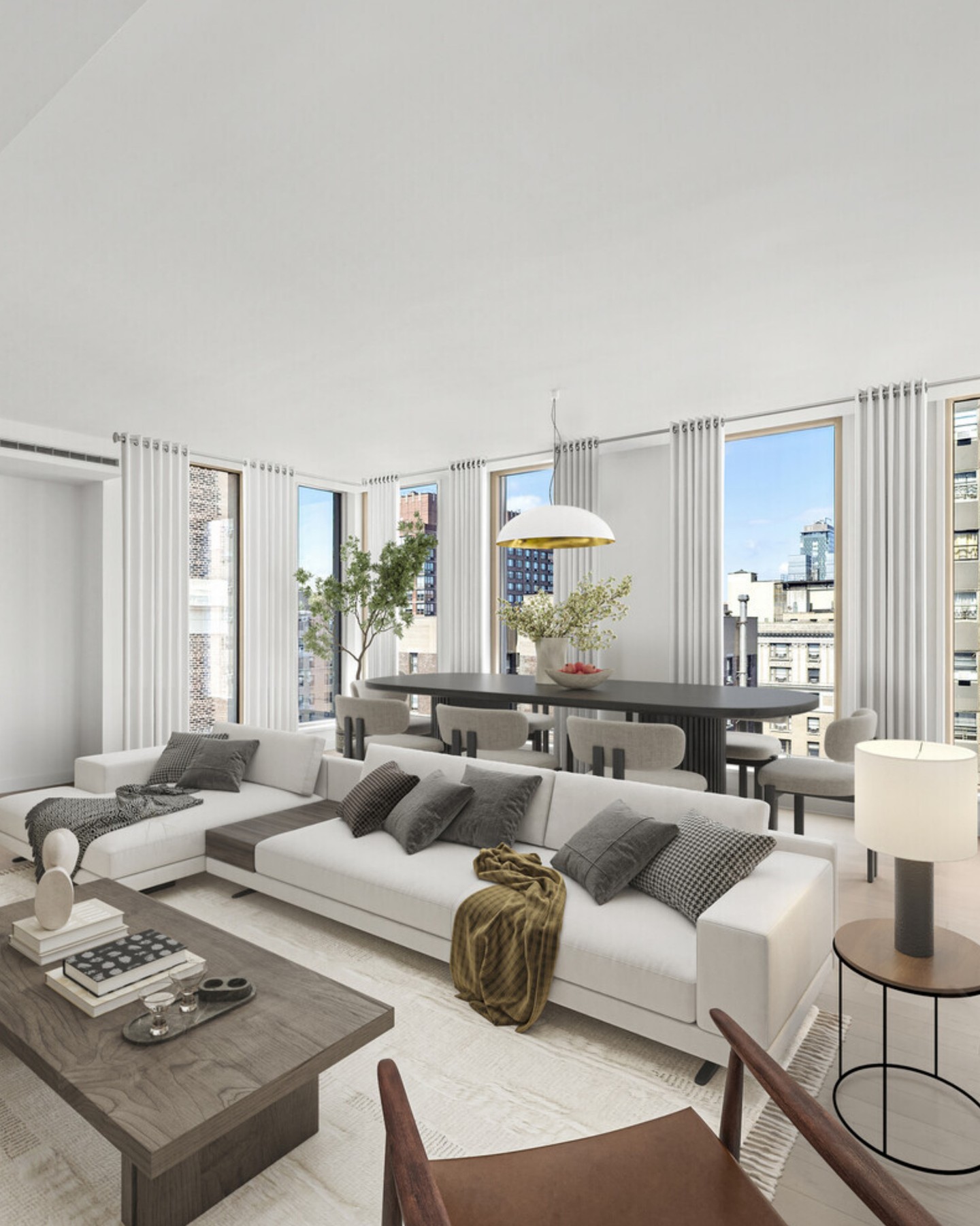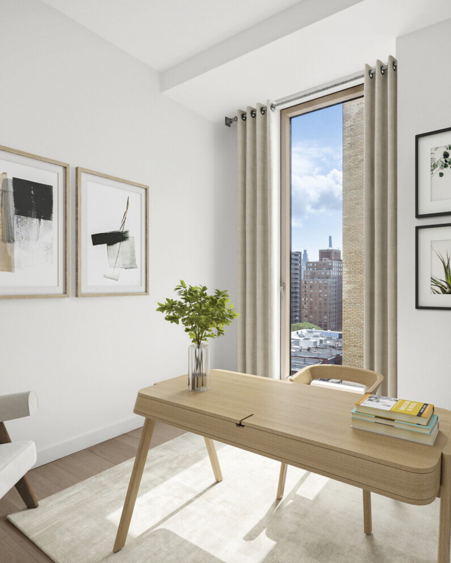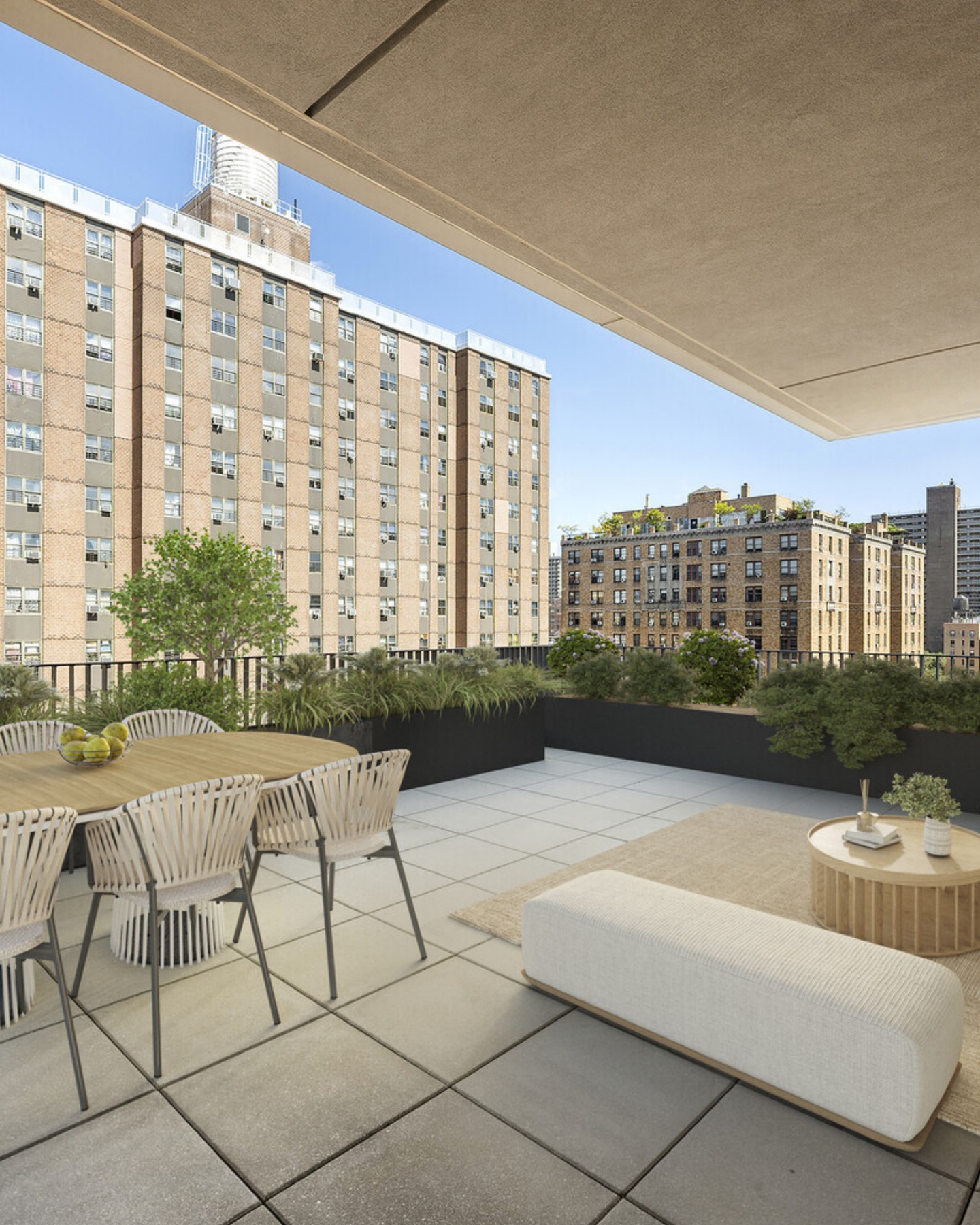 An intimate full-floor home, Residence 11 includes all the features of a luxurious, discrete townhouse; a private entrance, abundant outdoor garden/terrace space and complete separation of the sleeping quarters. The living dining room is a striking 22'5" by almost 21' room with three exposures: west, north and east. A true luxury, the 489sf terrace essentially doubles your living area and is accessed from both the living room and kitchen. The south-facing sleeping quarters can be entered from two separate hallways through pocket doors.