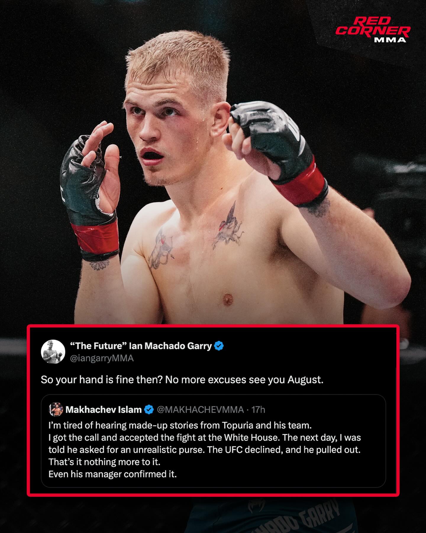 Ian Machado Garry responds to Islam Makhachev on X after Islam and Ilia went back and forth, with Islam Makhachev saying Ilia pulled out of their potential fight at the White House.