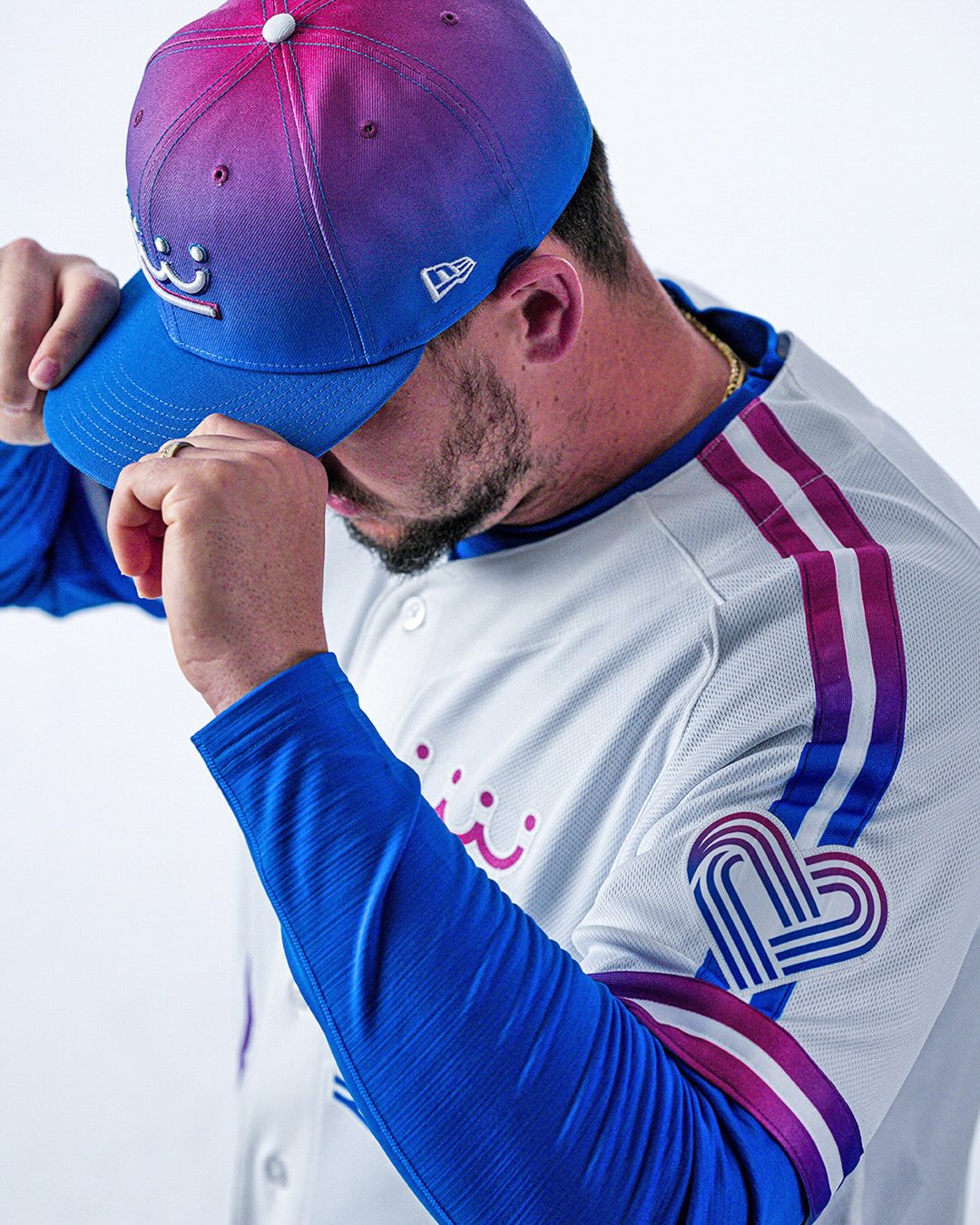 Giving a new look at the City of Fountains with a fresh color palette, the vibrant royal blue with magenta accents, art deco styling and iconic crown incorporation give these uniforms an unmistakable Kansas City vibe