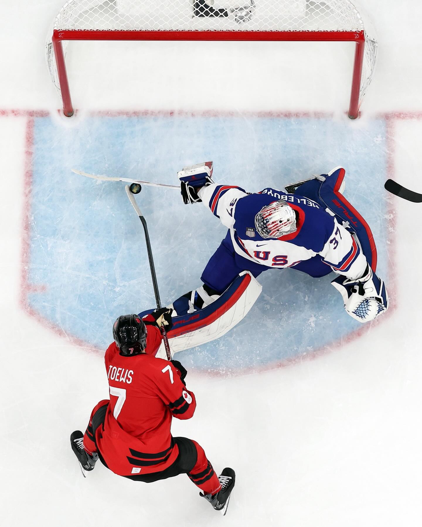 Connor Hellebuyck made a PADDLE SAVE on Devon Toews 😱 #MilanoCortina2026