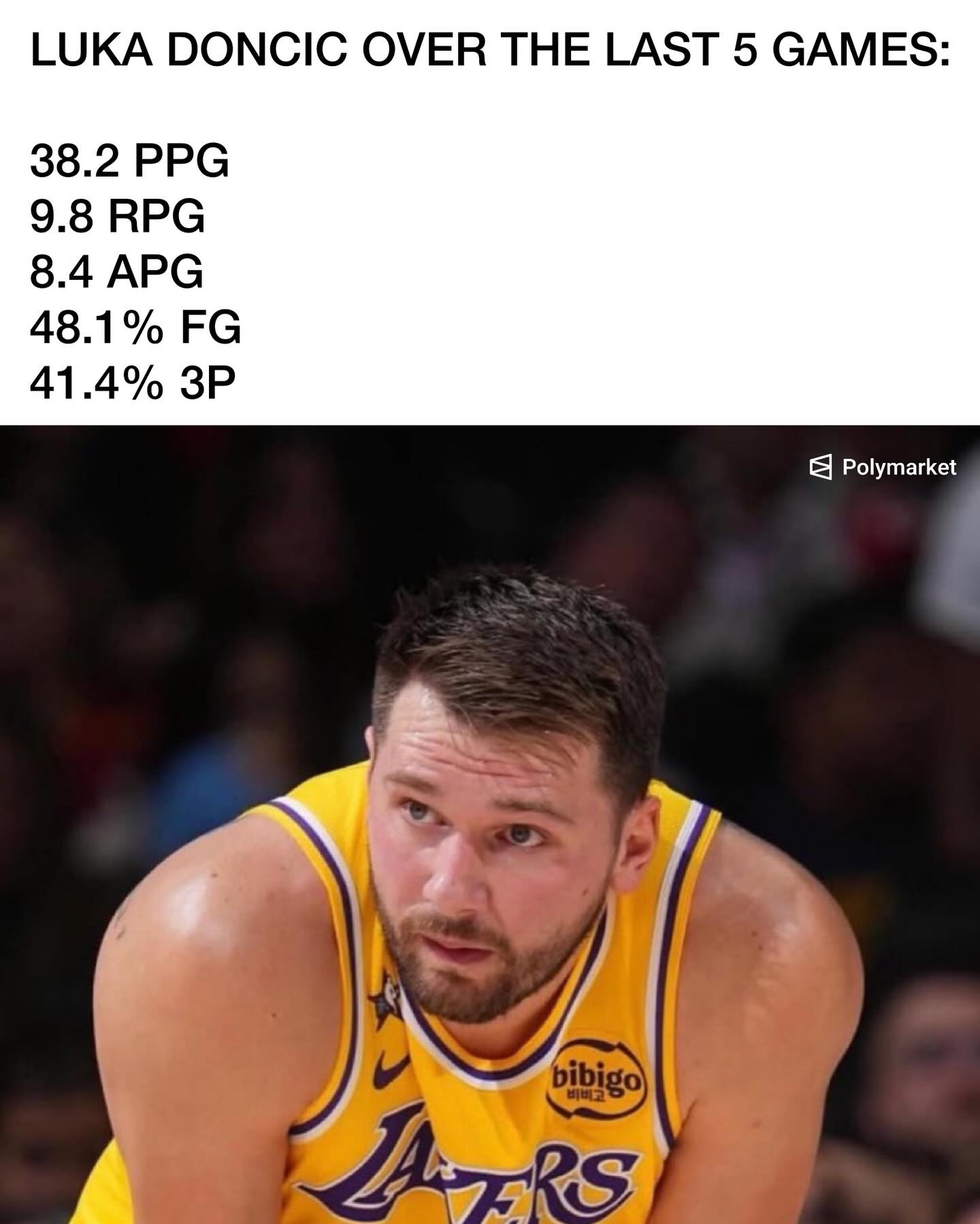 Luka Doncic since his breakup: 38.2 PPG 9.8 RPG 8.4 APG 2.2 SPG 1.4 BPG 48.1% FG 41.4% 3P 81.8% FT 37.0 MPG