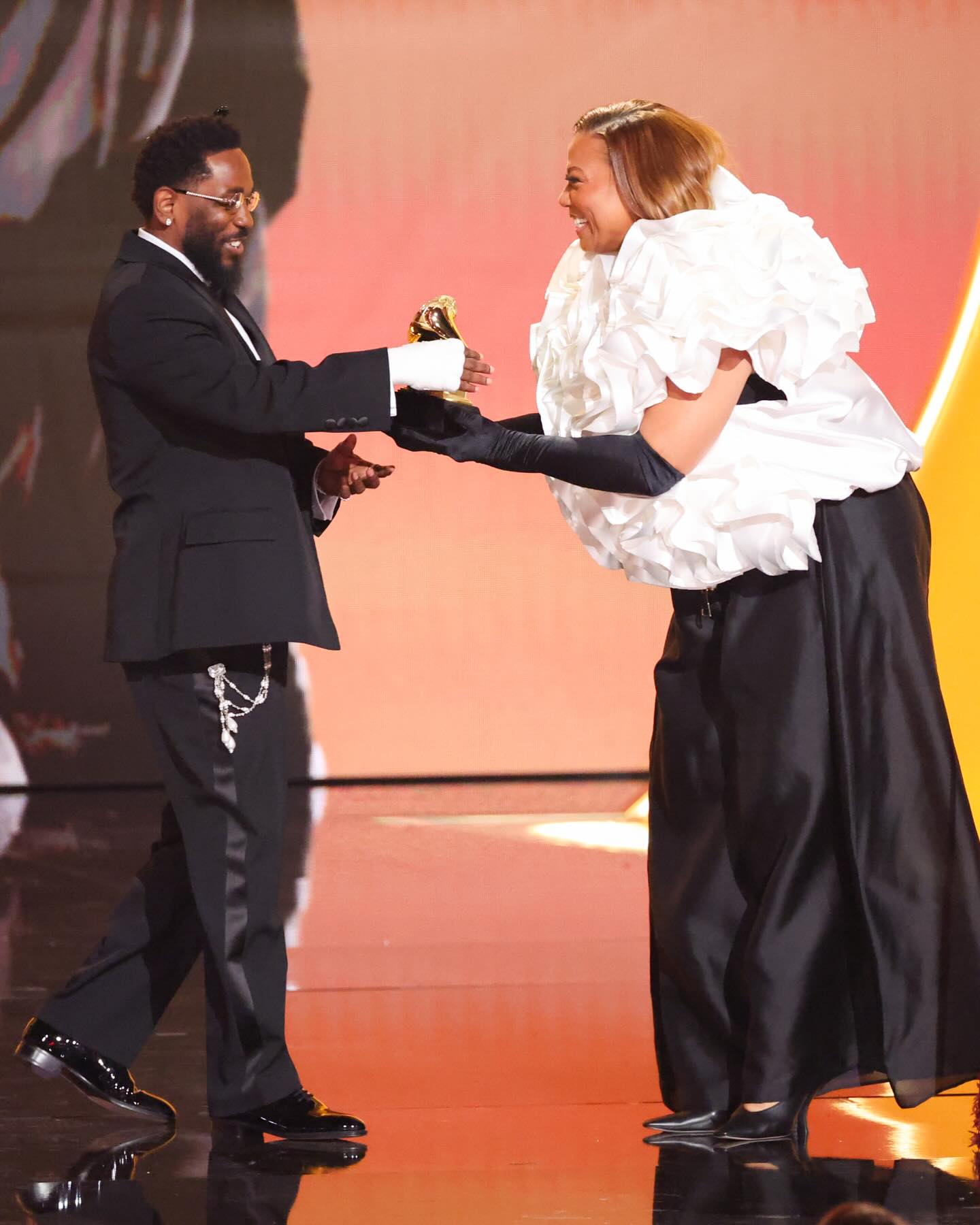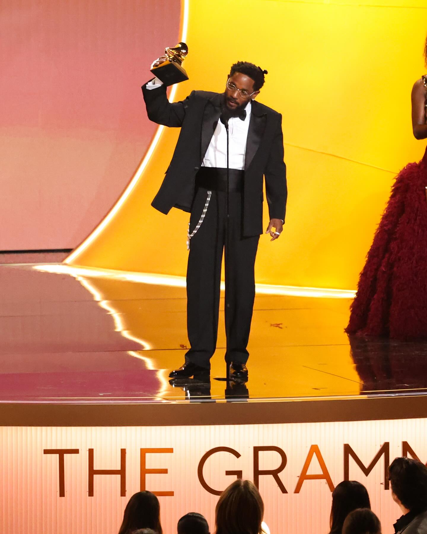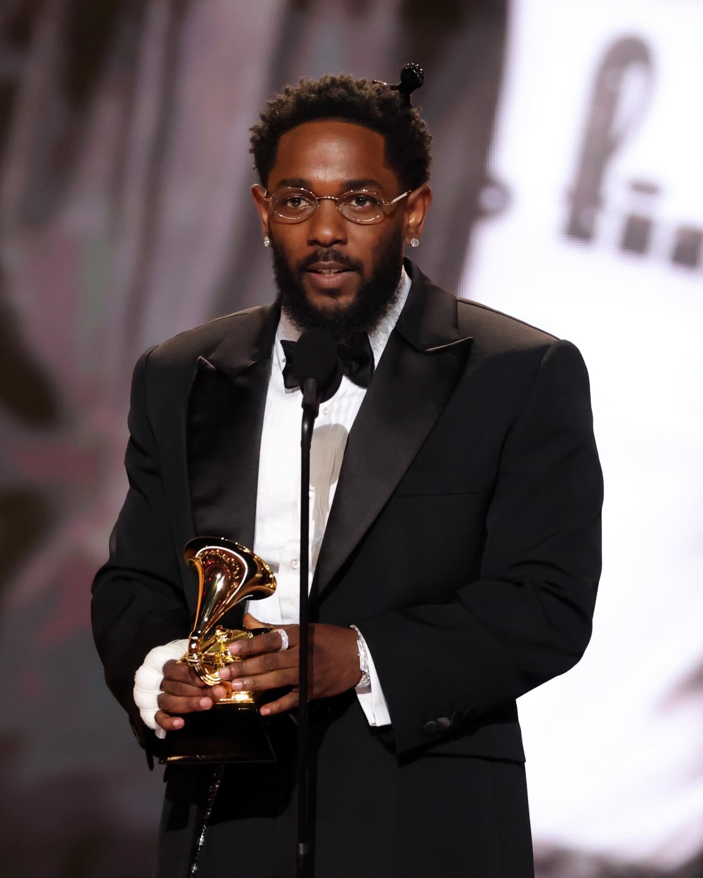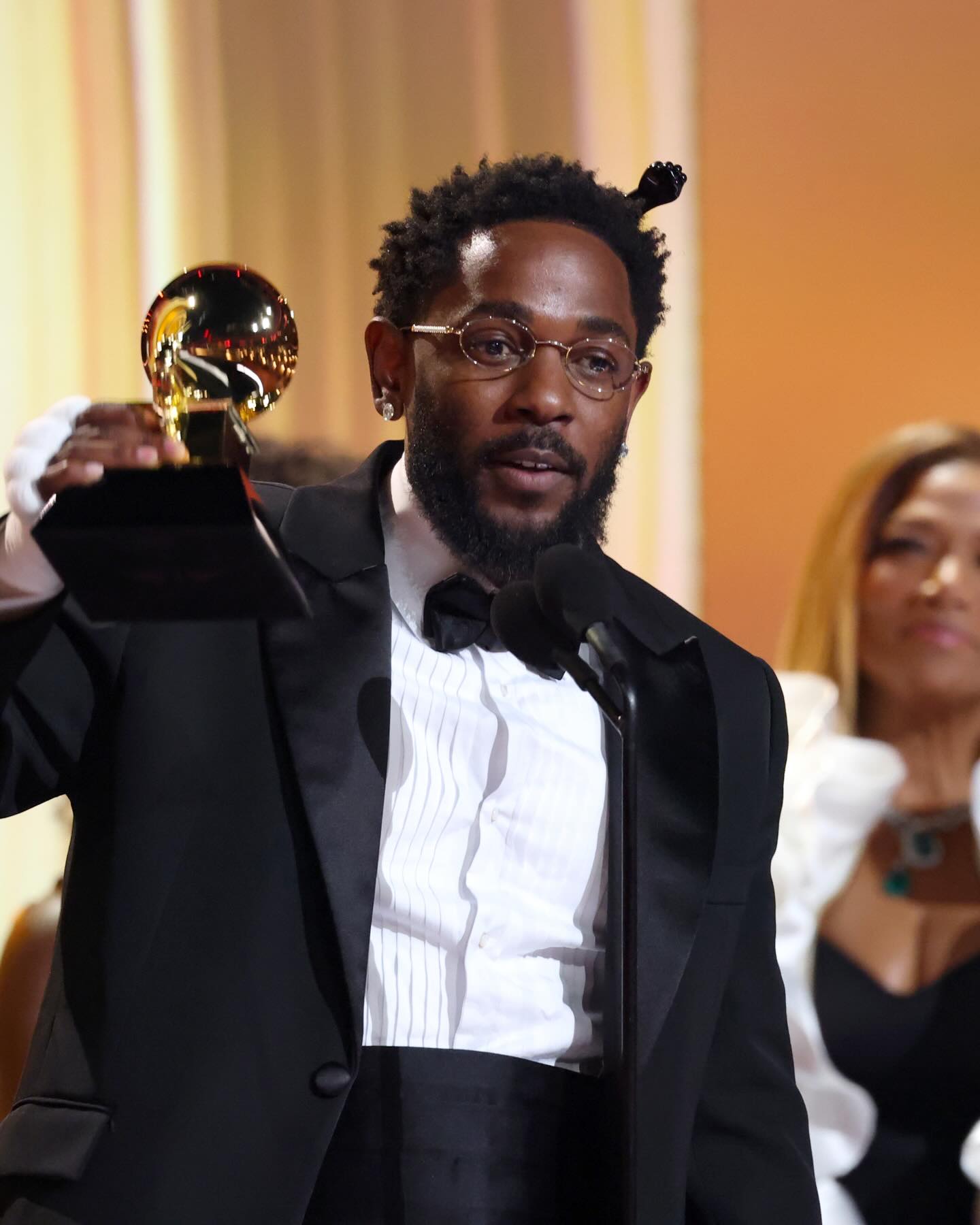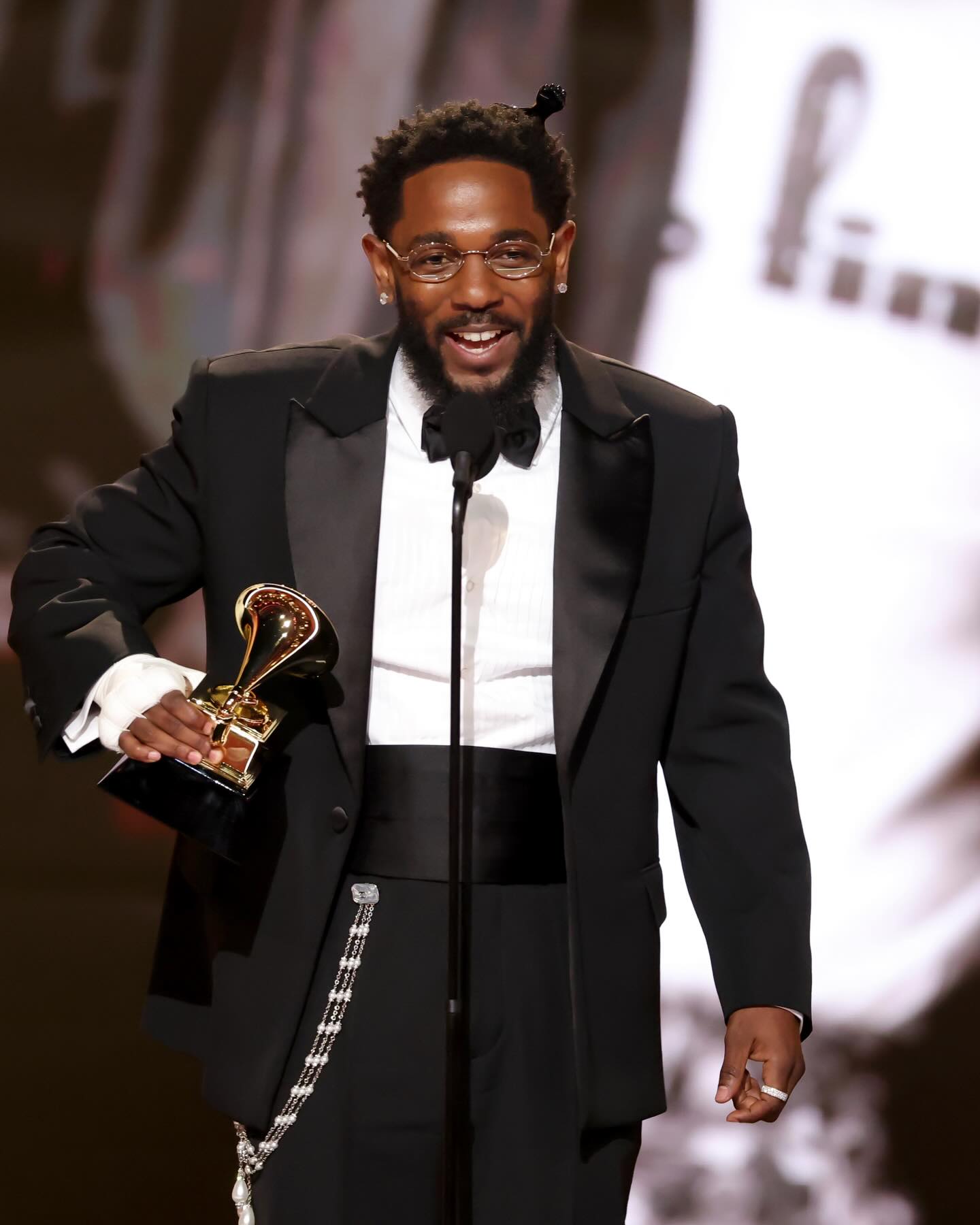 Kendrick Lamar accepting his 2026 Grammy for Best Rap Album ๐