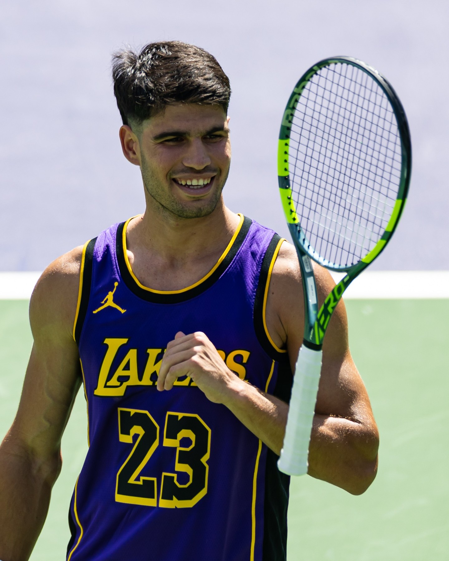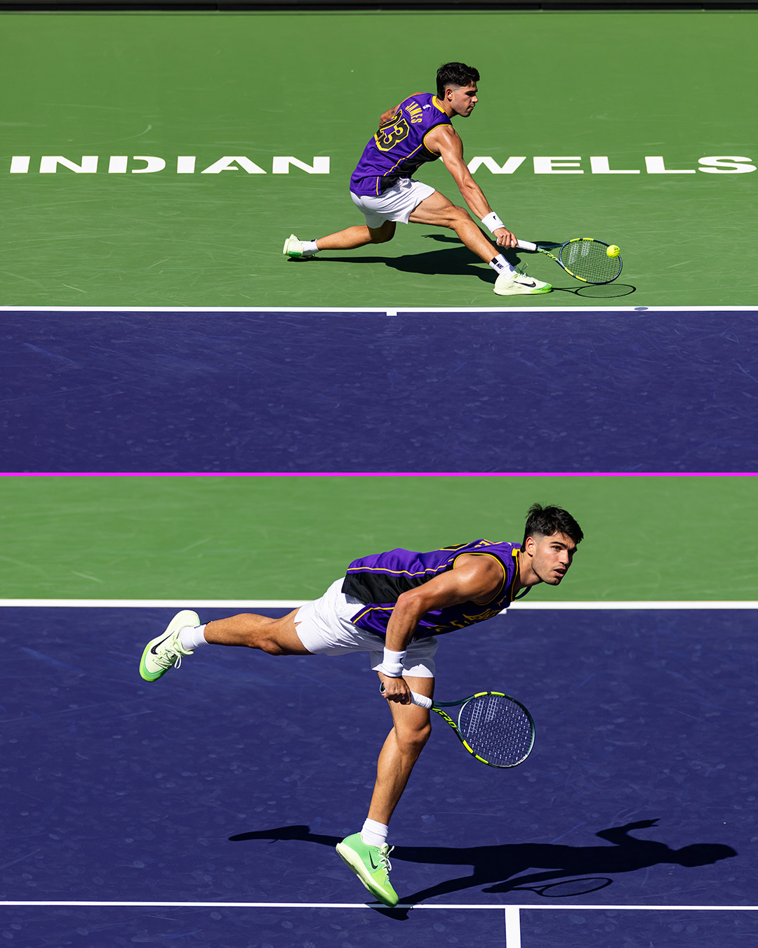 Carlos Alcaraz repping LeBron James and a fresh mullet at Indian Wells πΎπ