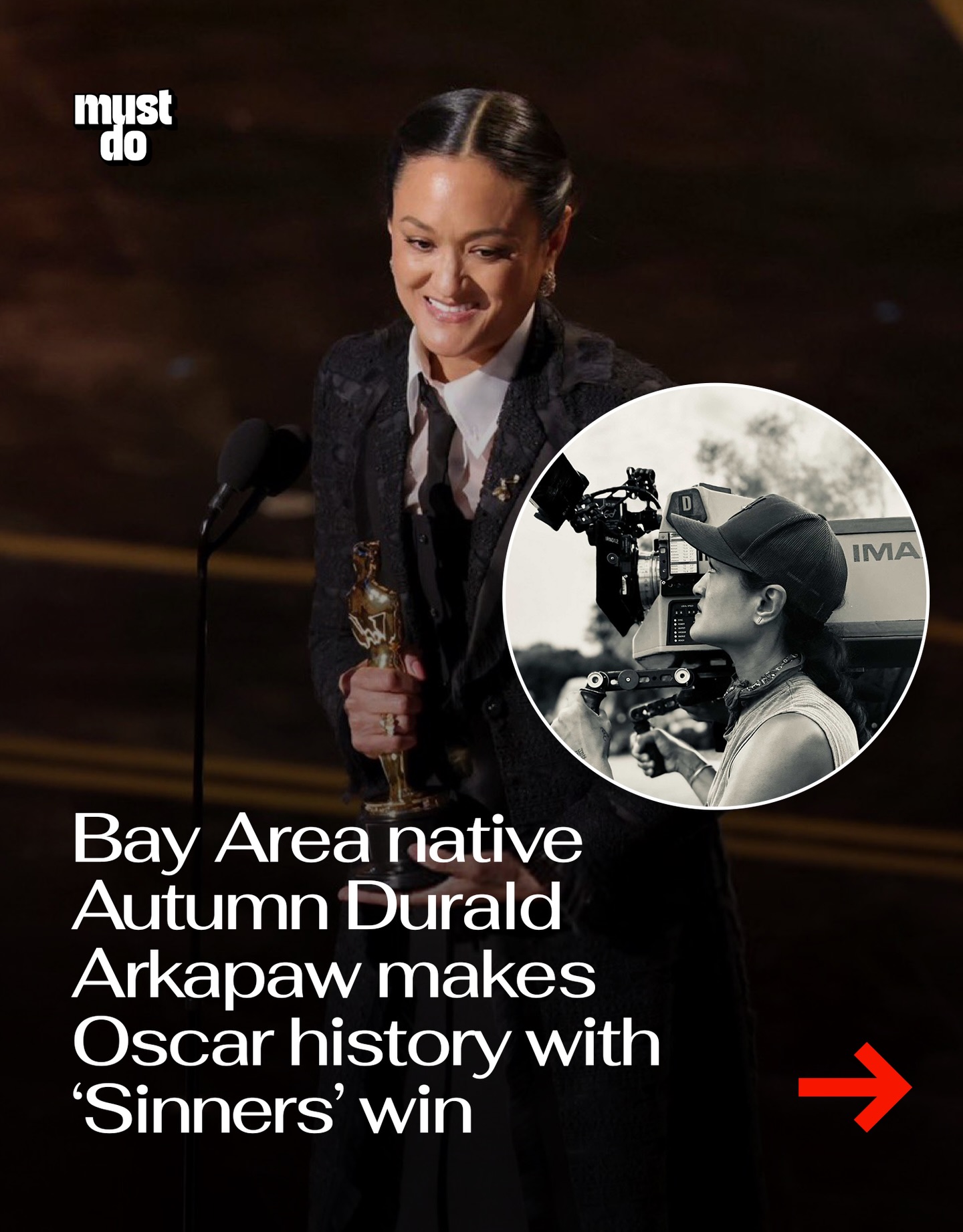 Arkapaw was born in Oxnard and raised in the Bay Area. She is Filipino on her mother’s side and Black Creole on her father’s, making her historic win a major milestone for representation behind the camera.