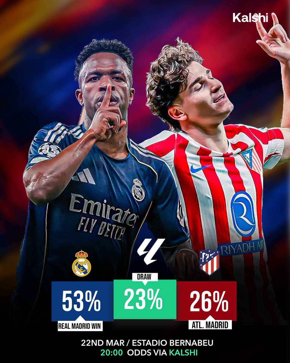 🚨 La Liga title race heats up. • Real Madrid vs Atletico Madrid • Barcelona vs Real Valecano Both Real Madrid and Barcelona can’t afford to drop points.