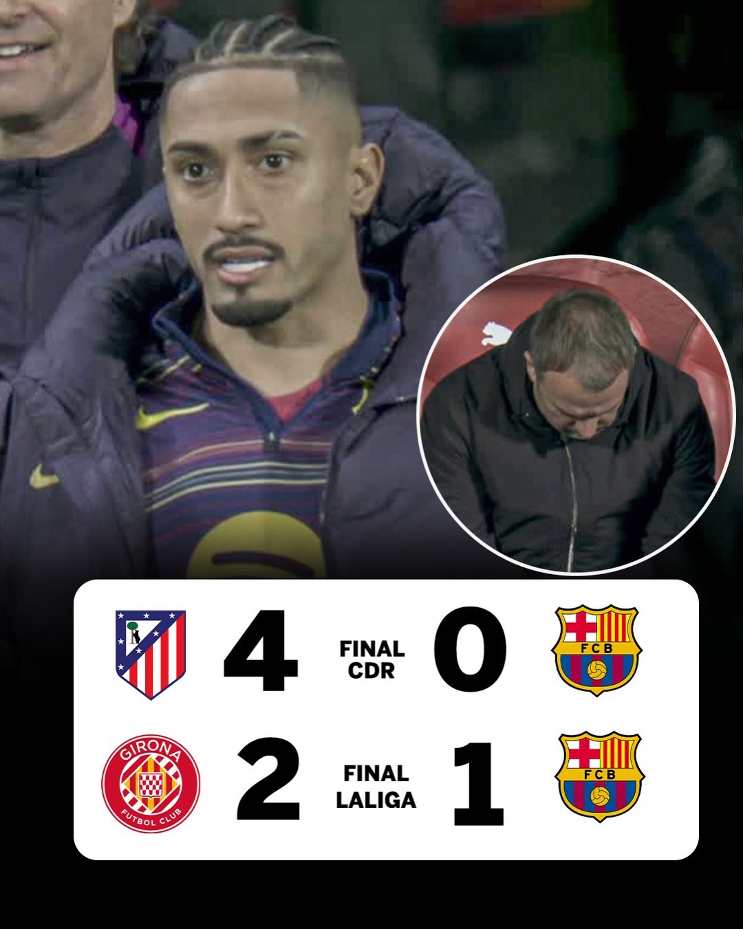 In the same week Hansi Flickβs guys are practically out of the Copa del Rey and lost the 1st place in La Liga. π