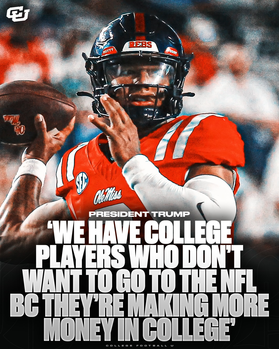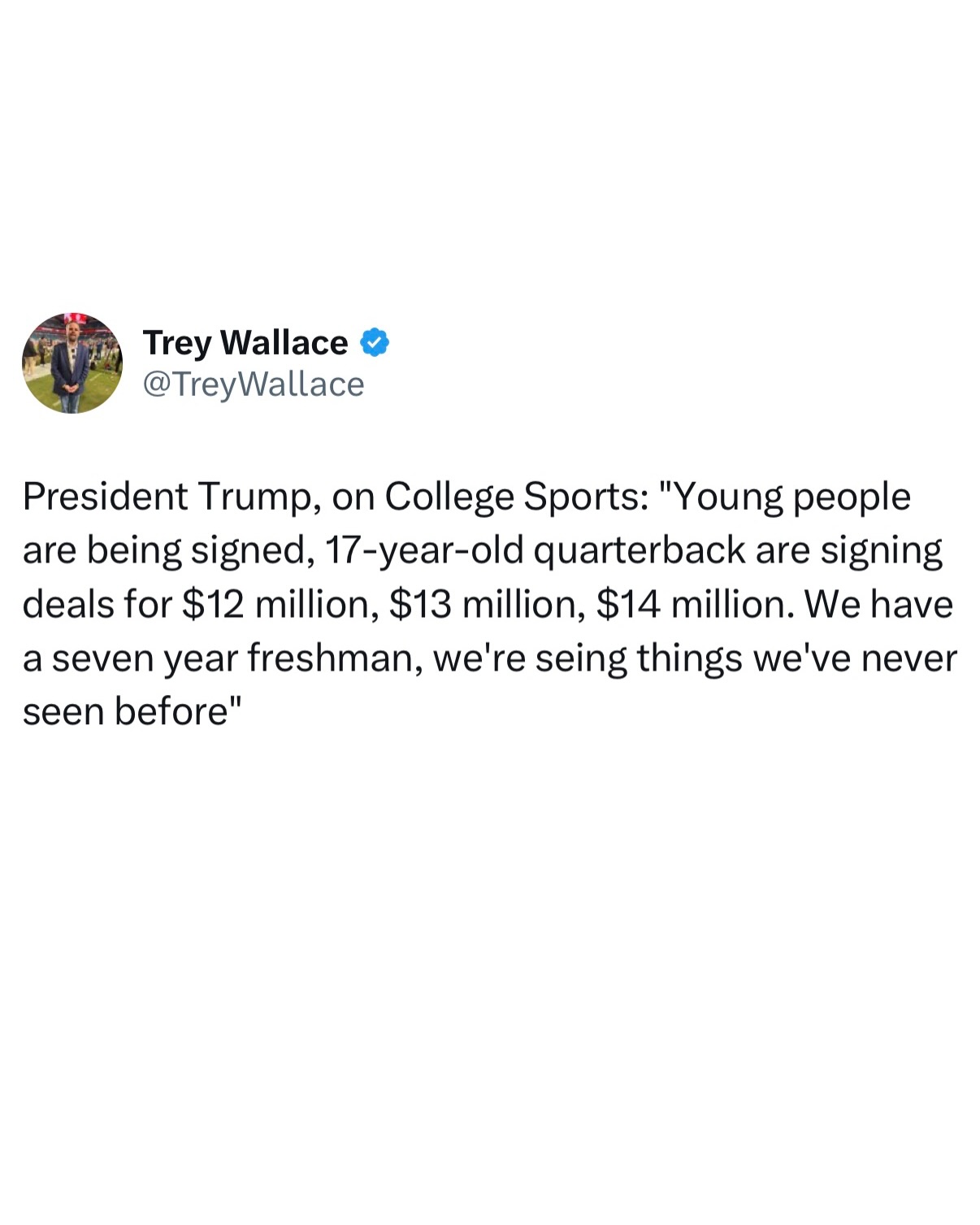 TRENDING: President Trump talks about how insane the CFB landscape is right now specifically with freshman QB’s making millions😳