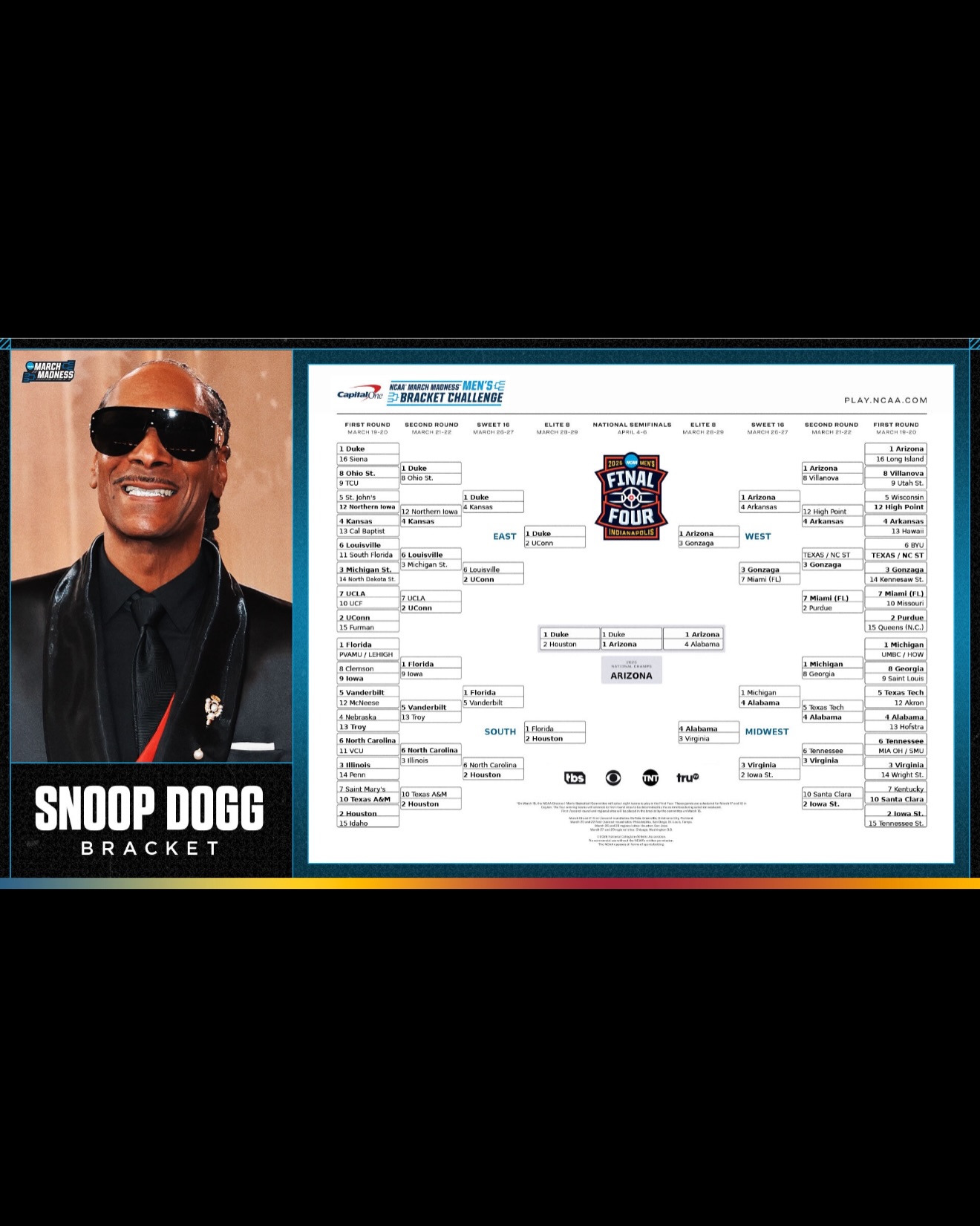 Snoop has Alabama reaching the final 4.. I’ve always liked you @snoopdogg