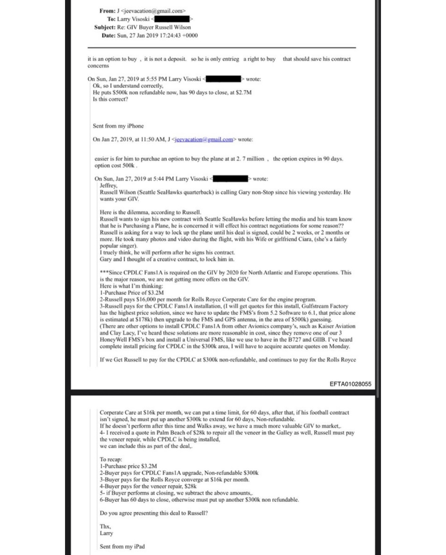 Wilson was allegedly looking to buy a plane from Epstein, according to the file.