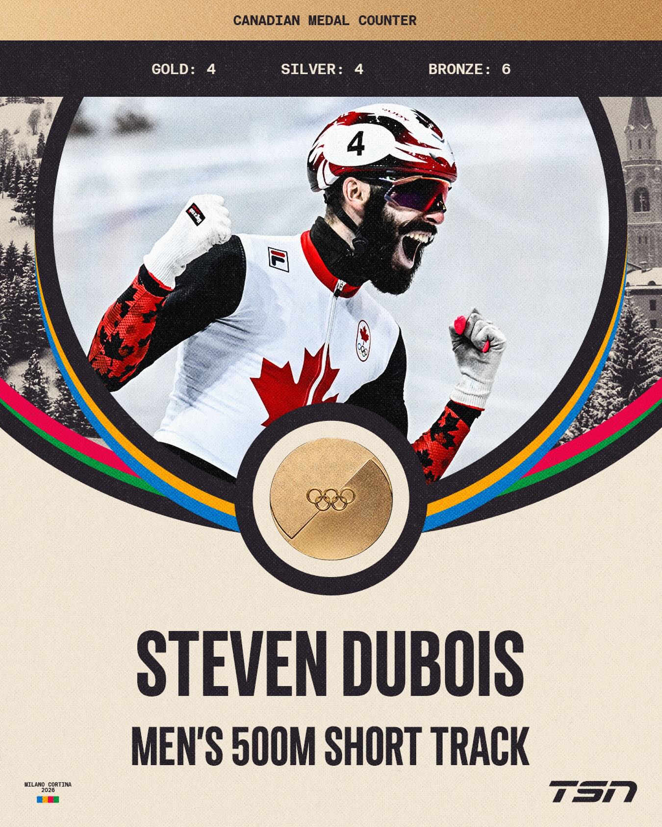 Steven Dubois wins the men’s 500m short track to take home another gold medal for Canada 🙌