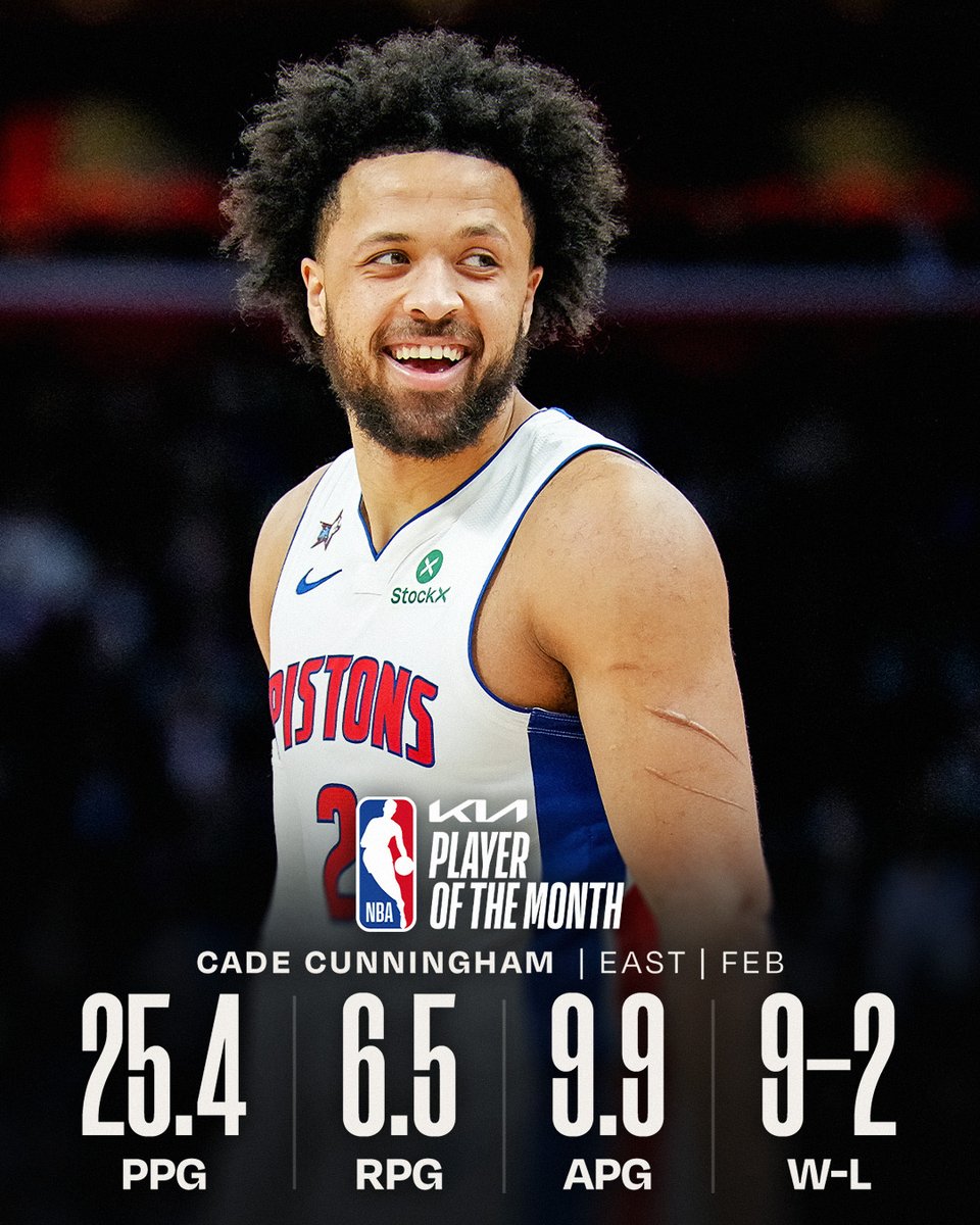 The @Kia NBA Players of the Month for February! West: Victor Wembanyama (@spurs) East: Cade Cunningham (@DetroitPistons)