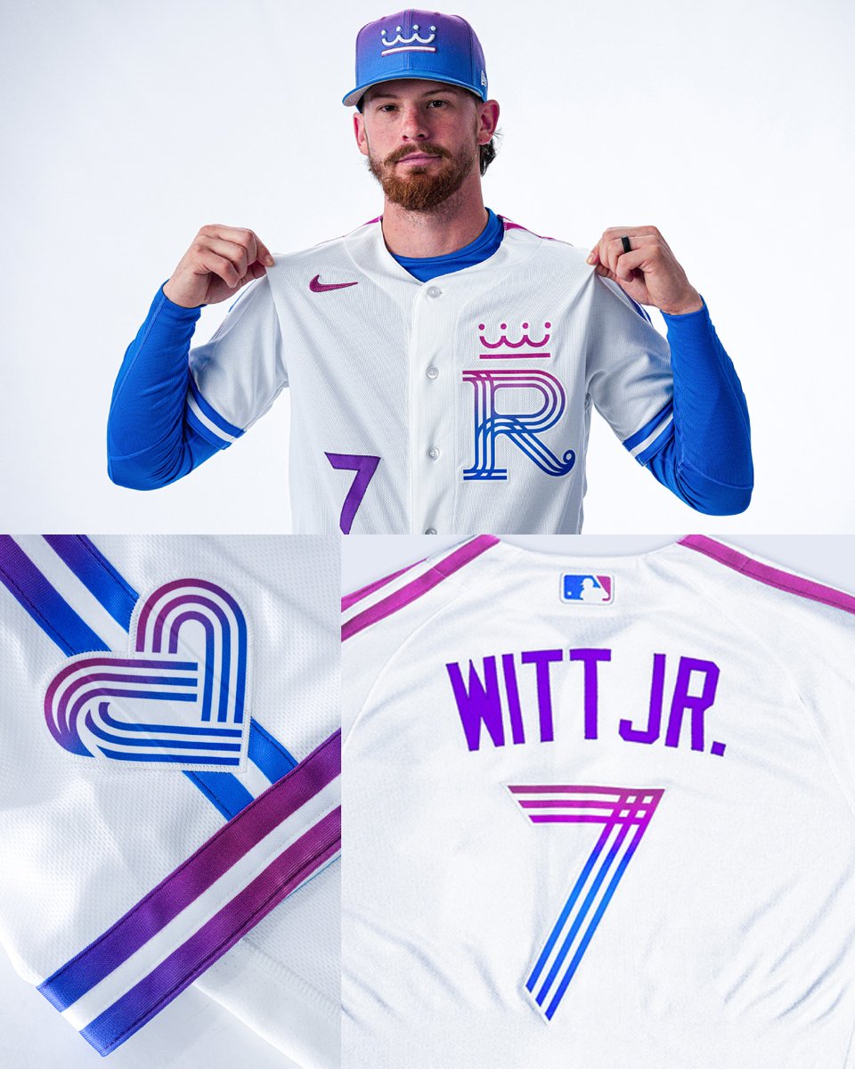 The Royals’ City Connect uniforms give a new look at the City of Fountains with a new color palette and an updated visual language 🔵🟣 The vibrant royal blue with magenta accents, art deco styling and iconic crown incorporation give these uniforms a great Kansas City vibe ⬇️