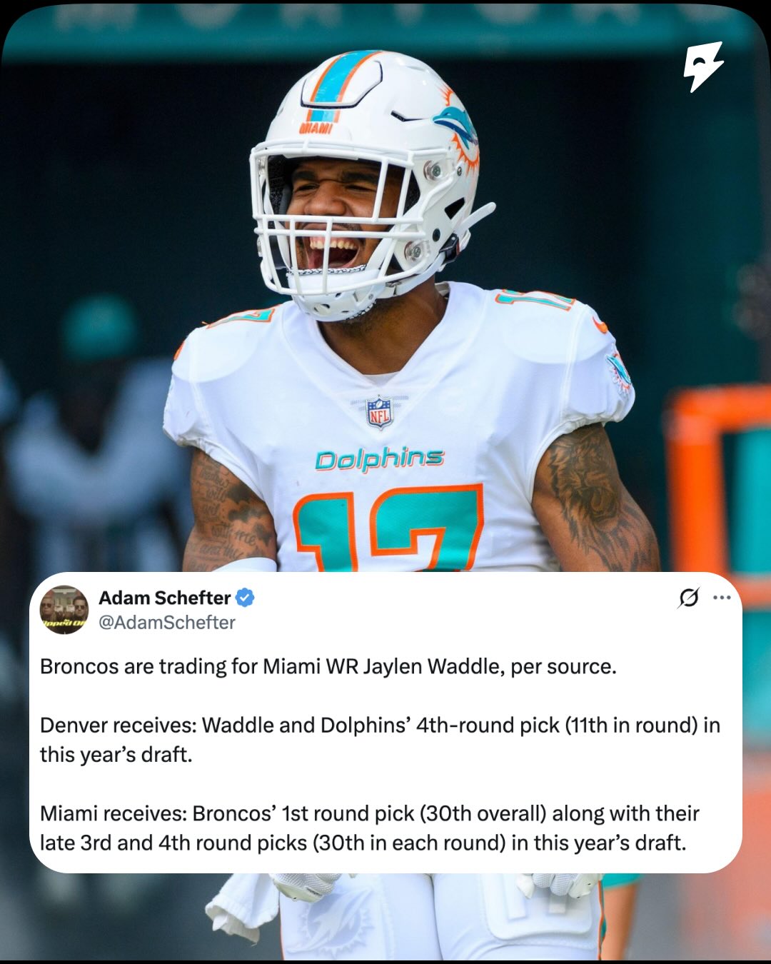 Nah man Jaylen Waddle to the Broncos the Dolphins are cleaning house ๐ณ