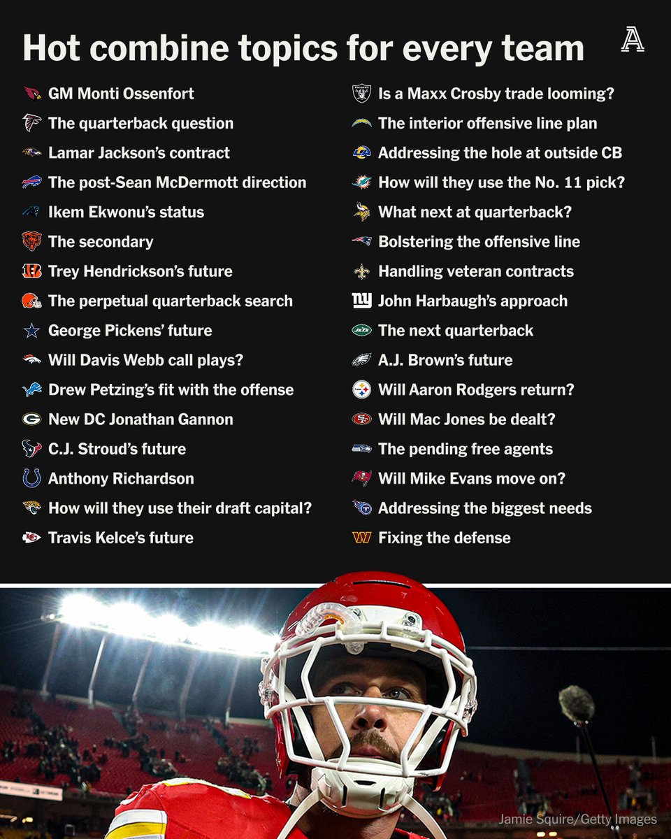 The NFL combine kicks off this week with plenty of offseason storylines to follow across the league. What topic should be top of mind for your team? Our staff weighed in: nytimes.com/athletic/7063486/2