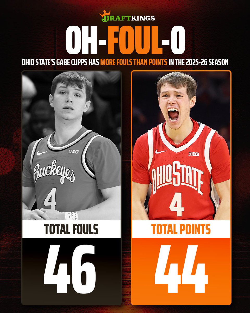 THE MOST ABSURD STAT IN CBB 🤯 Ohio State's Gabe Cupps currently has more FOULS than POINTS in the 2025-26 regular season😳 (via @OSUHoopsInsider)