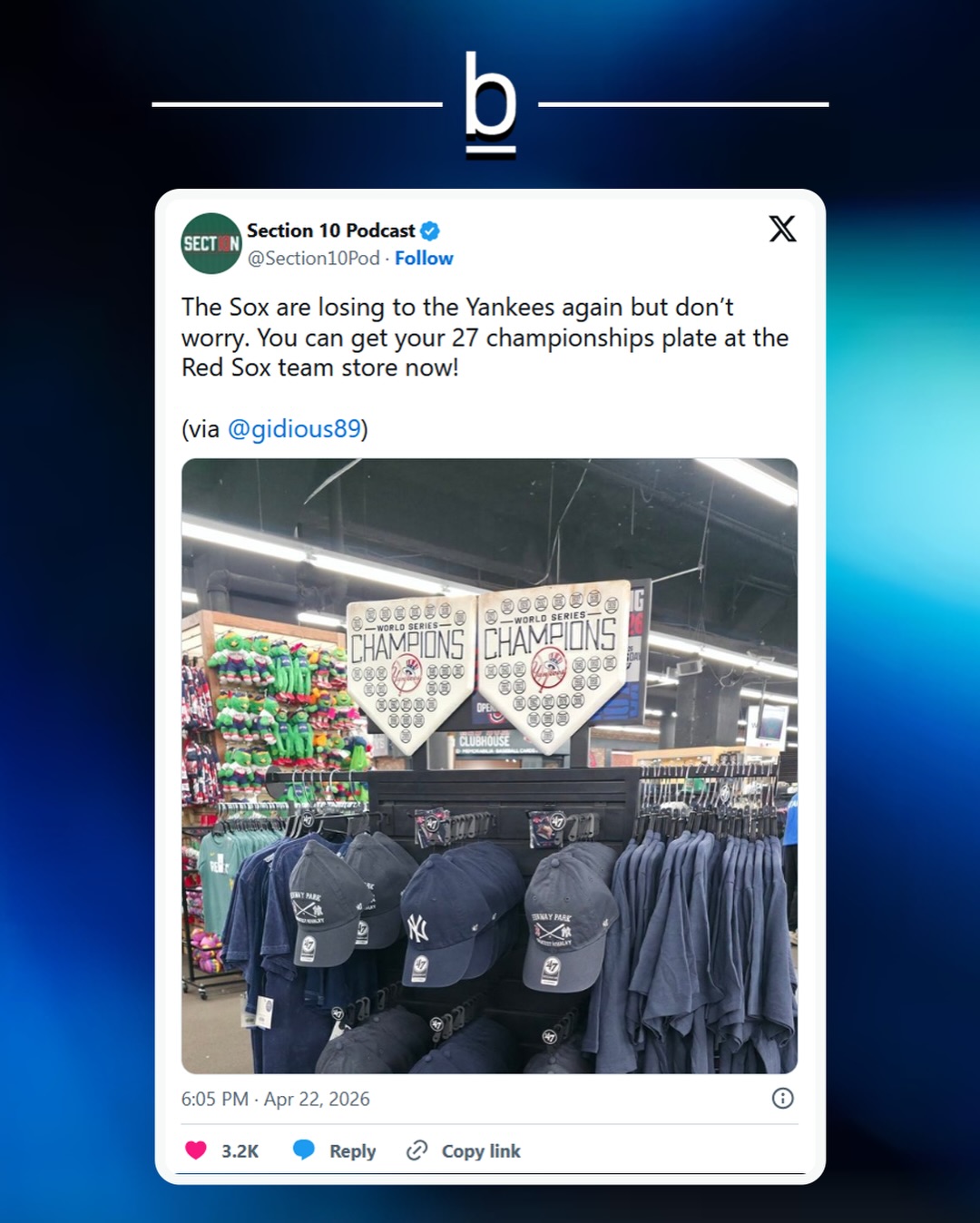 We’re talking Yankees hats, apparel, even pieces celebrating their 27 titles. Fans started posting photos and it immediately set people off, because this is the one place you’d expect to never see that logo. 😂