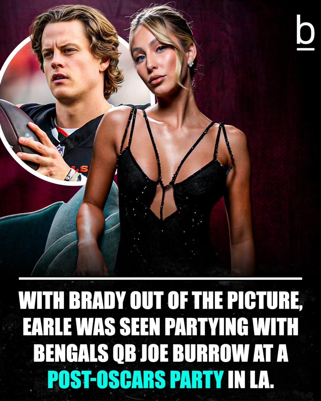 With Brady out of the picture, Earle was seen partying with Bengals QB Joe Burrow at a post-Oscars party in LA. 🏆🍻