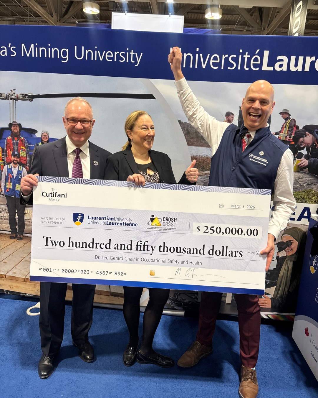 Laurentian University is thrilled to announce a $250,000 personal contribution from mining leader Mark Cutifani and his family to support the Dr. Leo Gerard Chair in Occupational Safety and Health (@crosh_crsst). This gift, alongside recent pledges from Vale Base Metals and USW Local 6500, strengthens our mission to protect workers, advance research, and honour Dr. Gerard’s lifelong legacy in workplace safety.