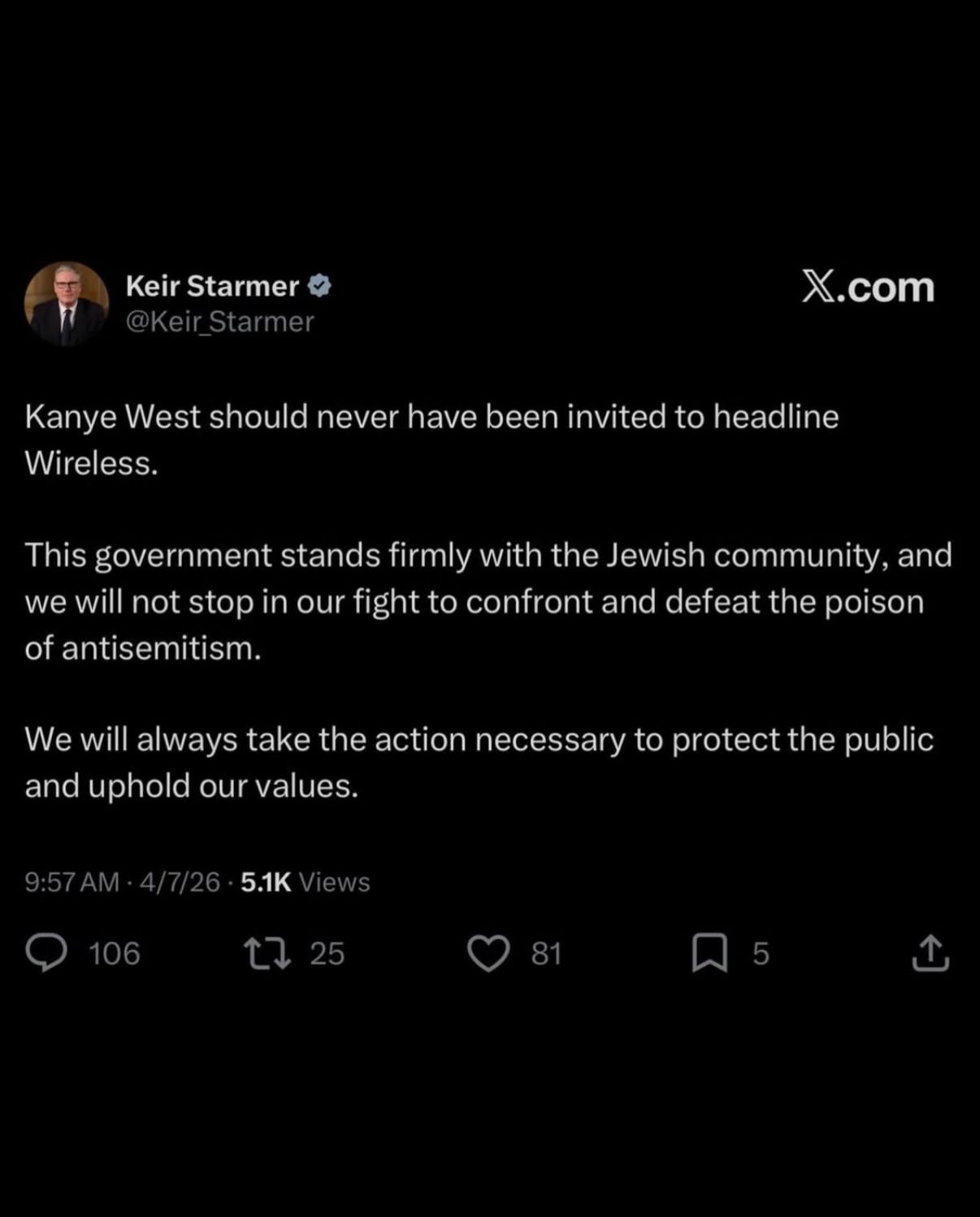 Before being blocked from entering the UK to perform, Ye said he “would be grateful” to meet members of the Jewish community following backlash over his Wireless Festival booking: