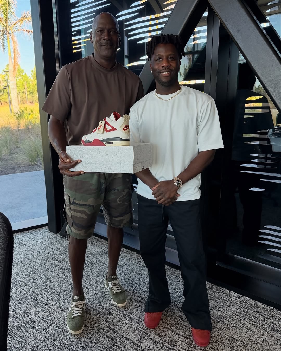 Nigel Sylvester gifted Michael Jordan his upcoming “Brick After Brick” Air Jordan 4 collab 🧱 Legendary link-up 🔥