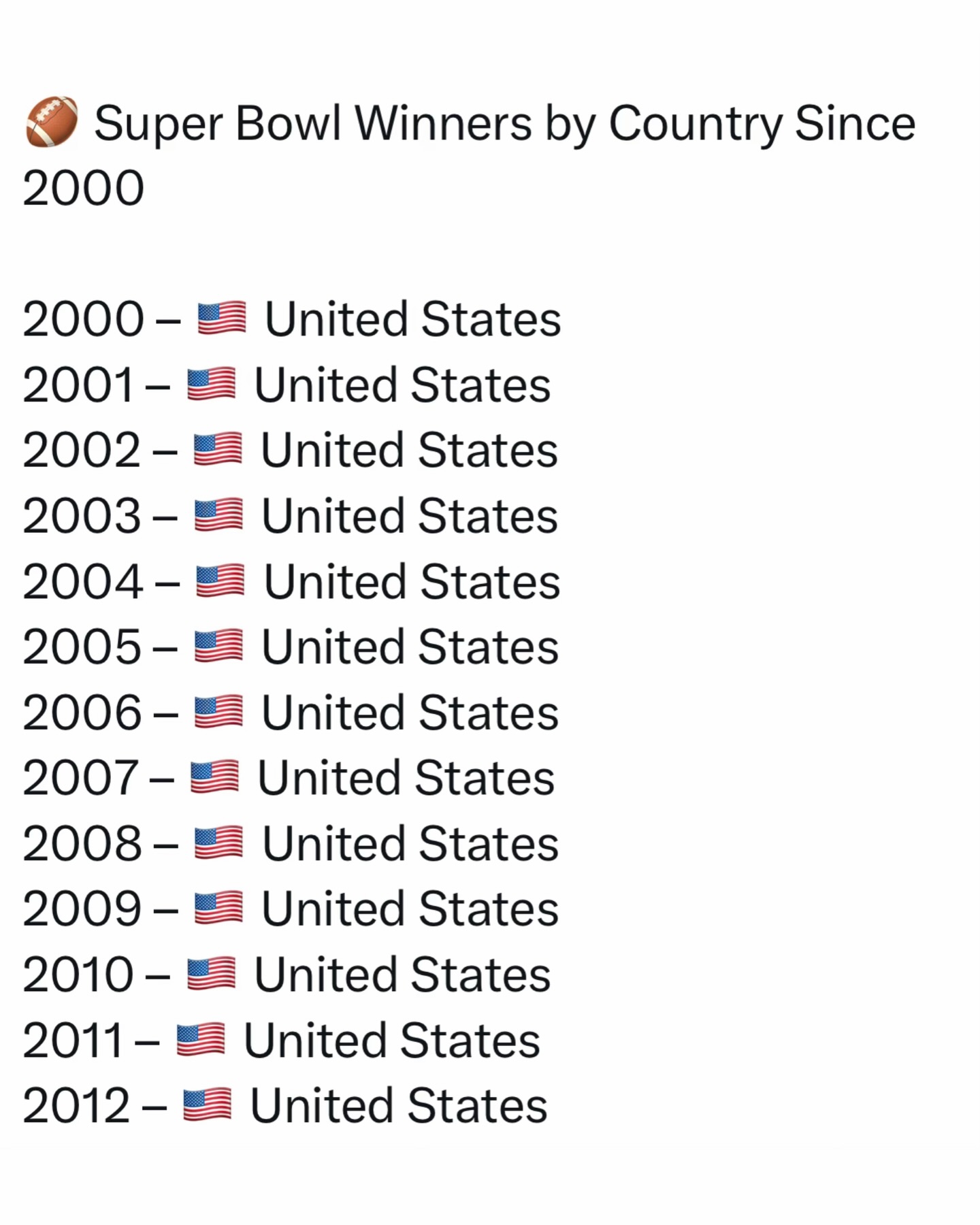 The Super Bowl is the annual championship game of the NFL, representing the highest level of professional American football. Played every February, it determines the league champion and has grown into a massive cultural event that functions as an unofficial national holiday in the United States.