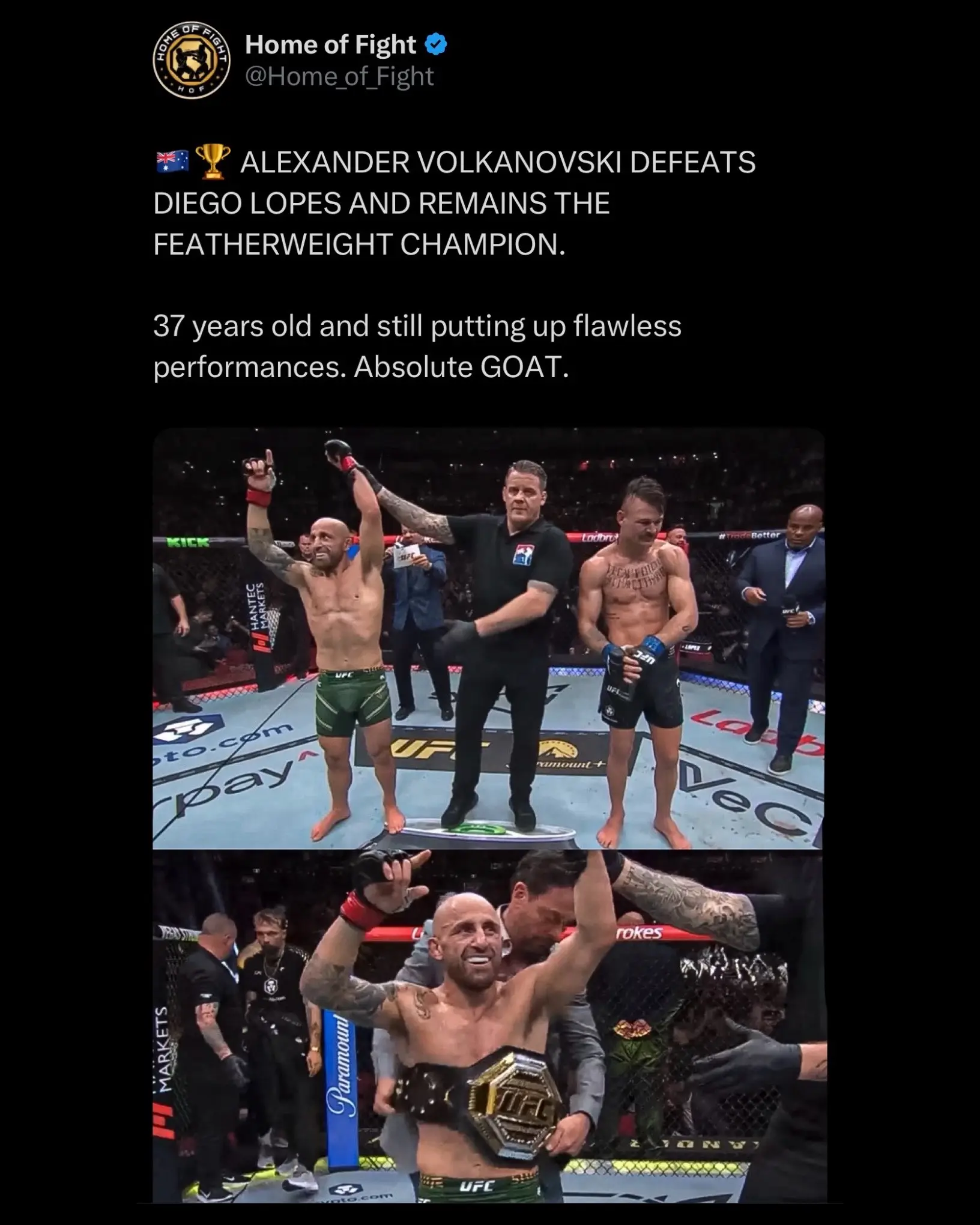Alexander Volkanovski defeats Diego Lopes via unanimous decision in their rematch to retain the UFC Featherweight Championship ๐ค Featherweight GOAT? ๐