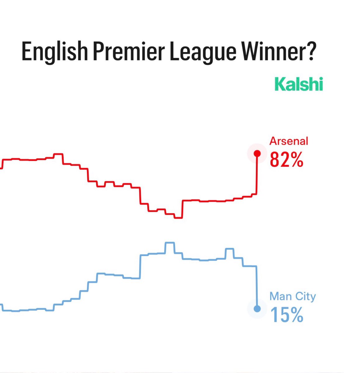 NEW: Arsenal now has an 82% chance to win the Premier League following Man City’s draw.