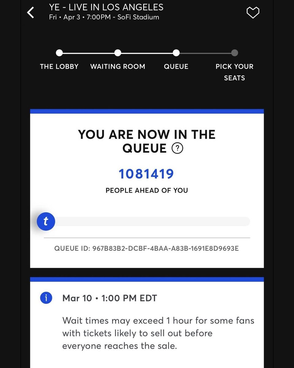 Ye reportedly had more than 1 million fans waiting in the queue during today’s presale for his Los Angeles concert at SoFi Stadium on April 3. 👀 On Monday (March 9), Ye and the venue announced the upcoming show, with general ticket sales set to begin Wednesday (March 11). The concert will mark Ye’s first official U.S. performance since the Free Larry Hoover Benefit Concert in L.A. back in 2021. His upcoming album Bully is expected to drop March 27. 🎤