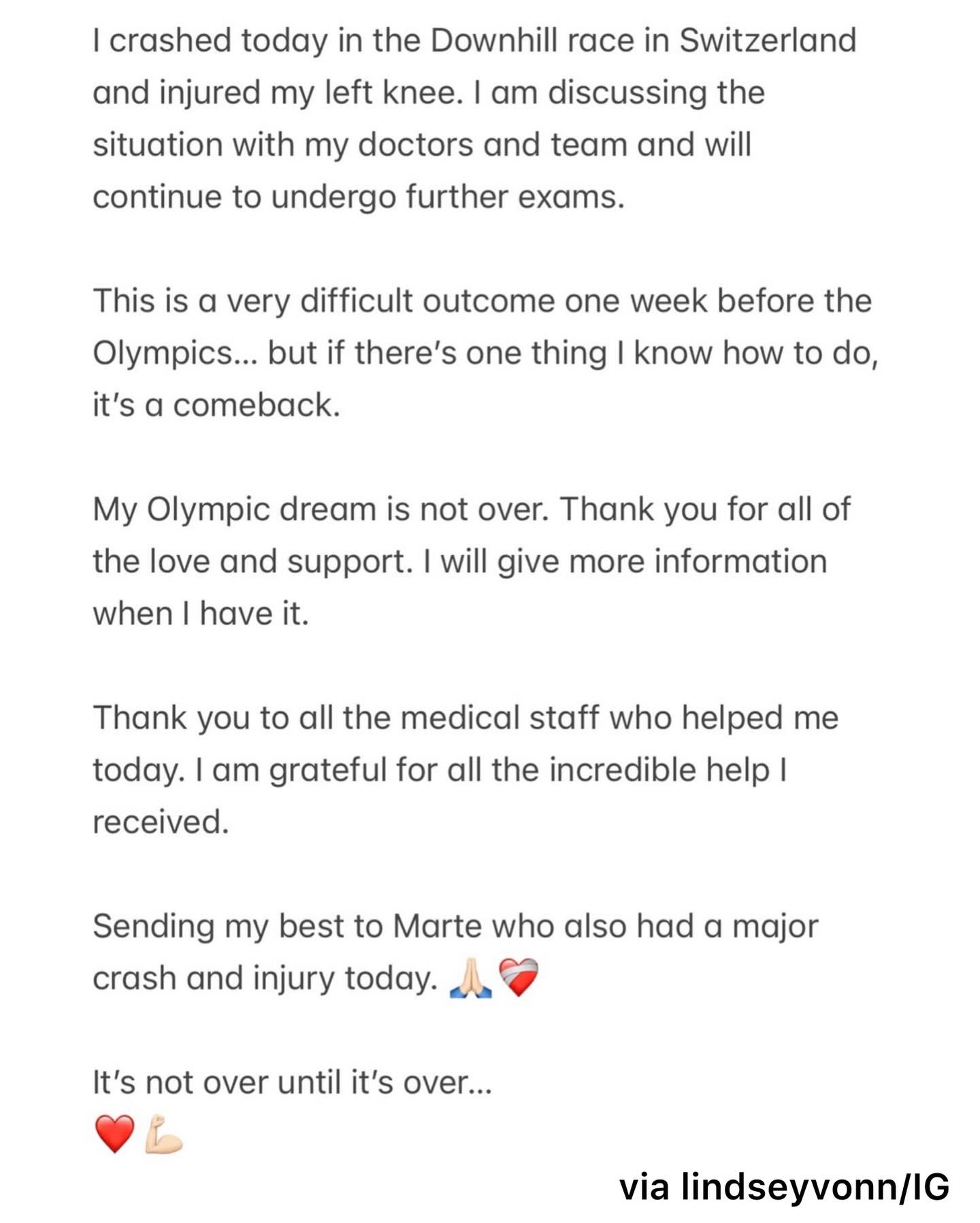 41-year-old American skiing superstar Lindsey Vonn “completely ruptured” her ACL ONE WEEK BEFORE THE OLYMPICS, per Patrick Sung Cuadrado 😳