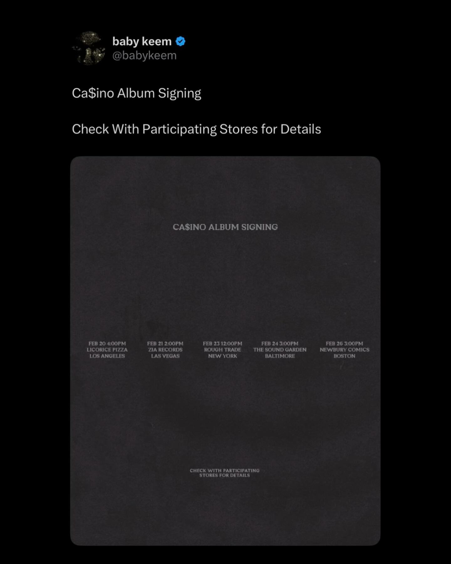 Baby Keem just announced five album signing events for ‘Ca$ino’💿🔥