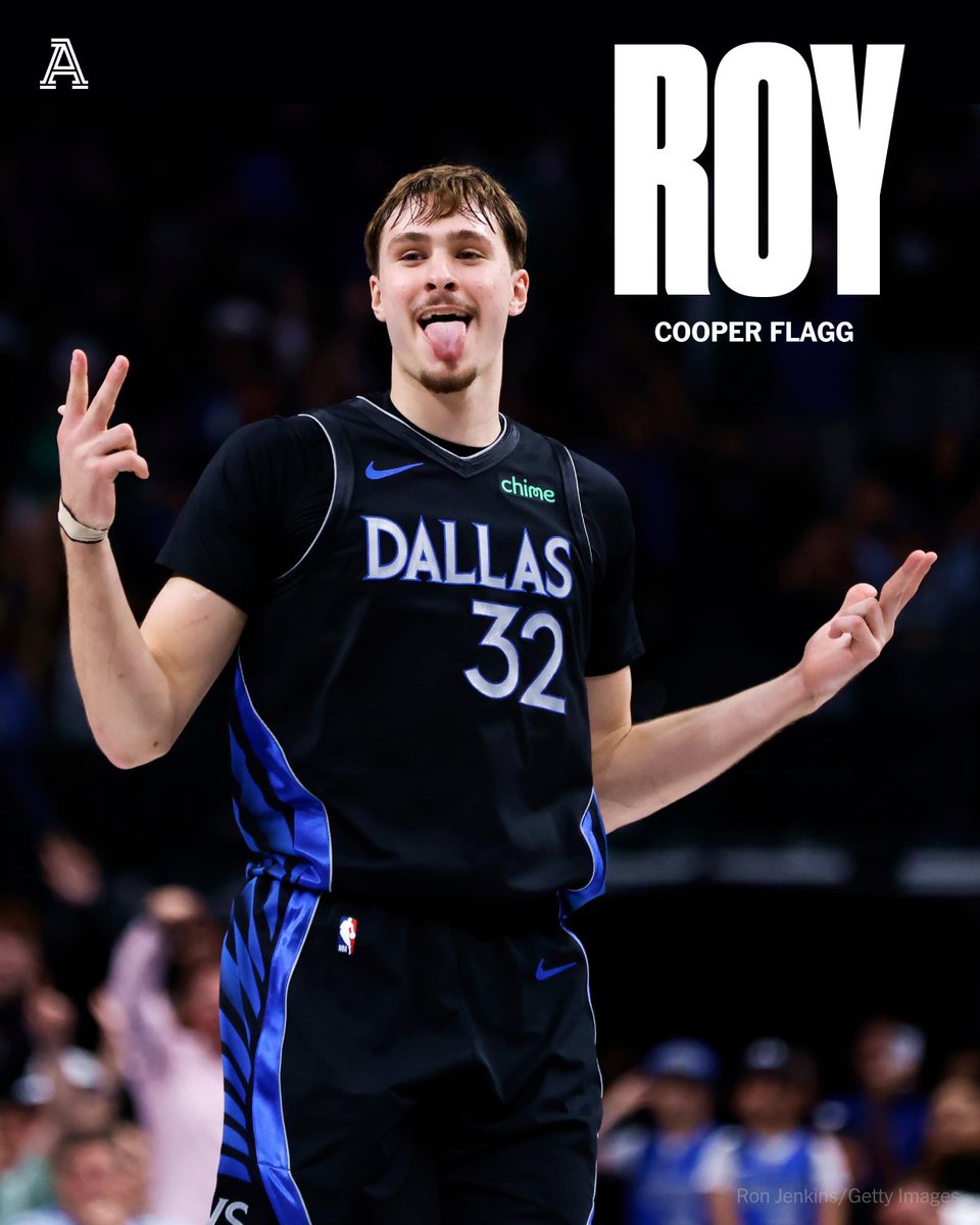 COOP, THERE IT IS. Cooper Flagg wins the 2025-26 NBA Rookie of the Year award π The @dallasmavs rookie averaged 21.0 PPG, 6.7 RPG and 4.5 APG this season.