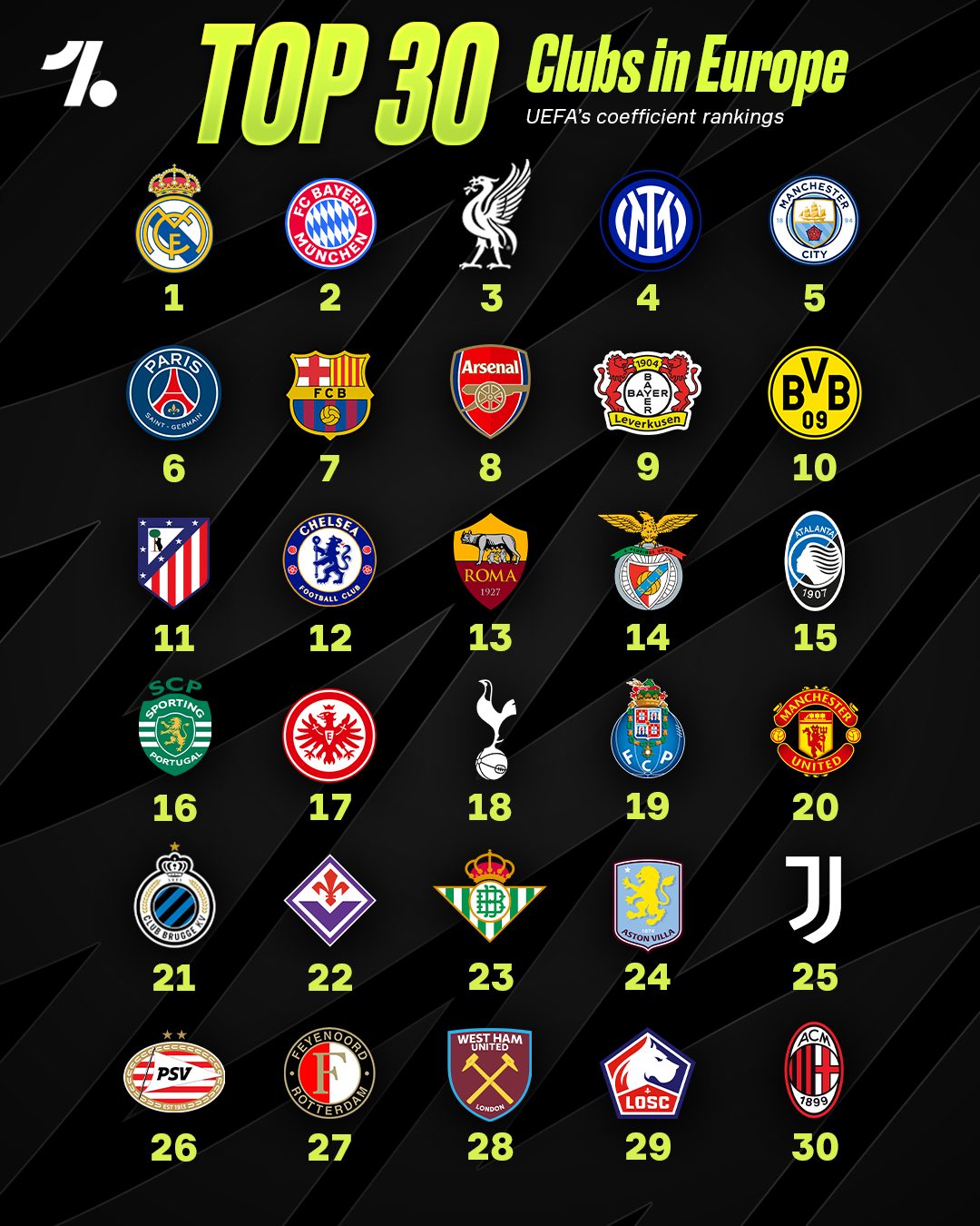 ๐ฎ๐น Napoli drop OUT of the Top 30 (now 33)