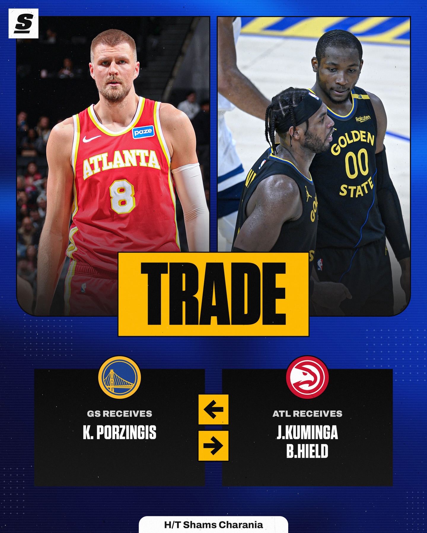 THE WARRIORS ARE SENDING JONATHAN KUMINGA AND BUDDY HIELD TO ATLANTA FOR KRISTAPS PORZINGIS. ๐ฎ