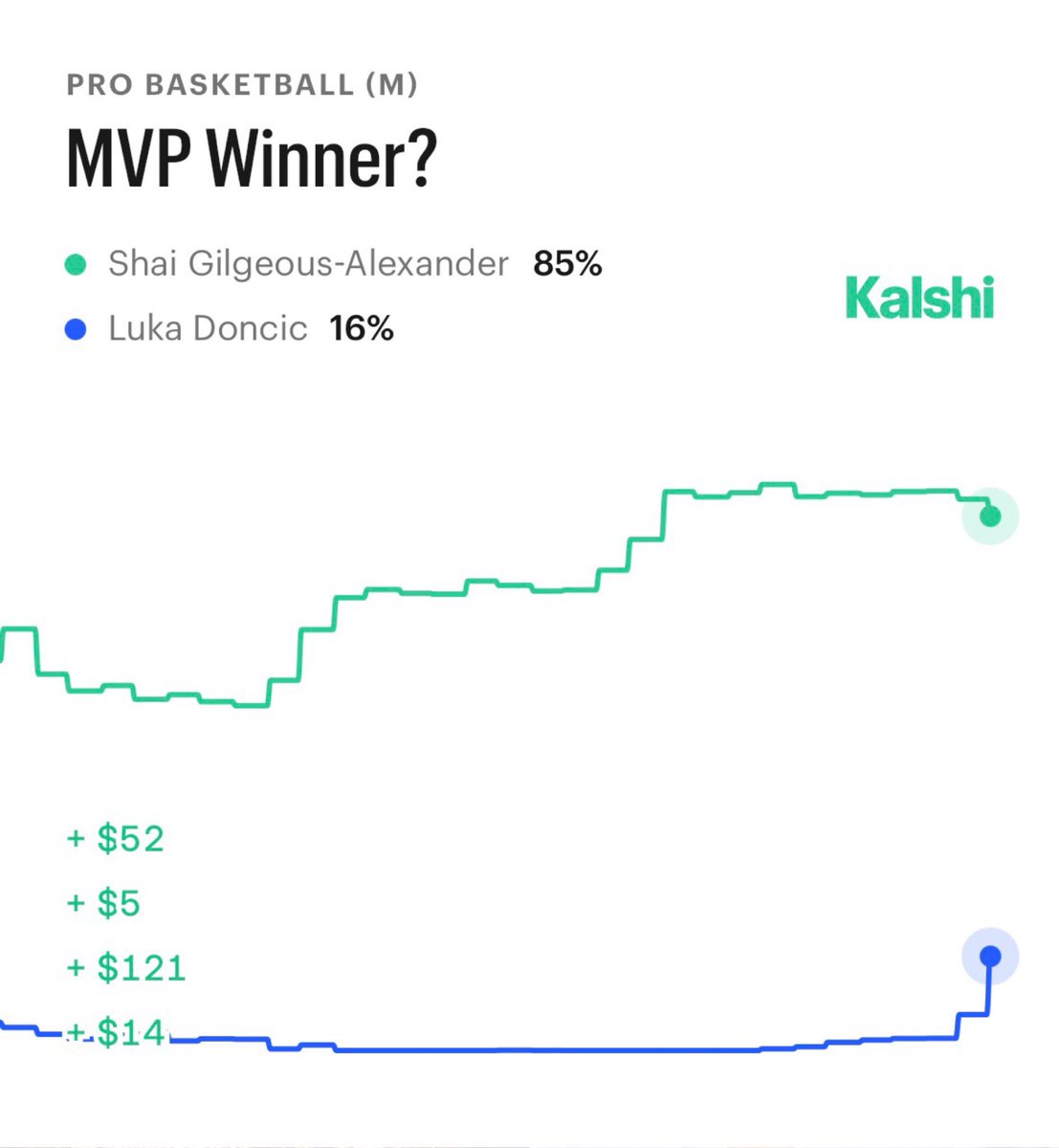 NEW: Luka Doncic’s MVP odds are FLYING up the Kalshi charts following his 60-point performance. Can he catch SGA?