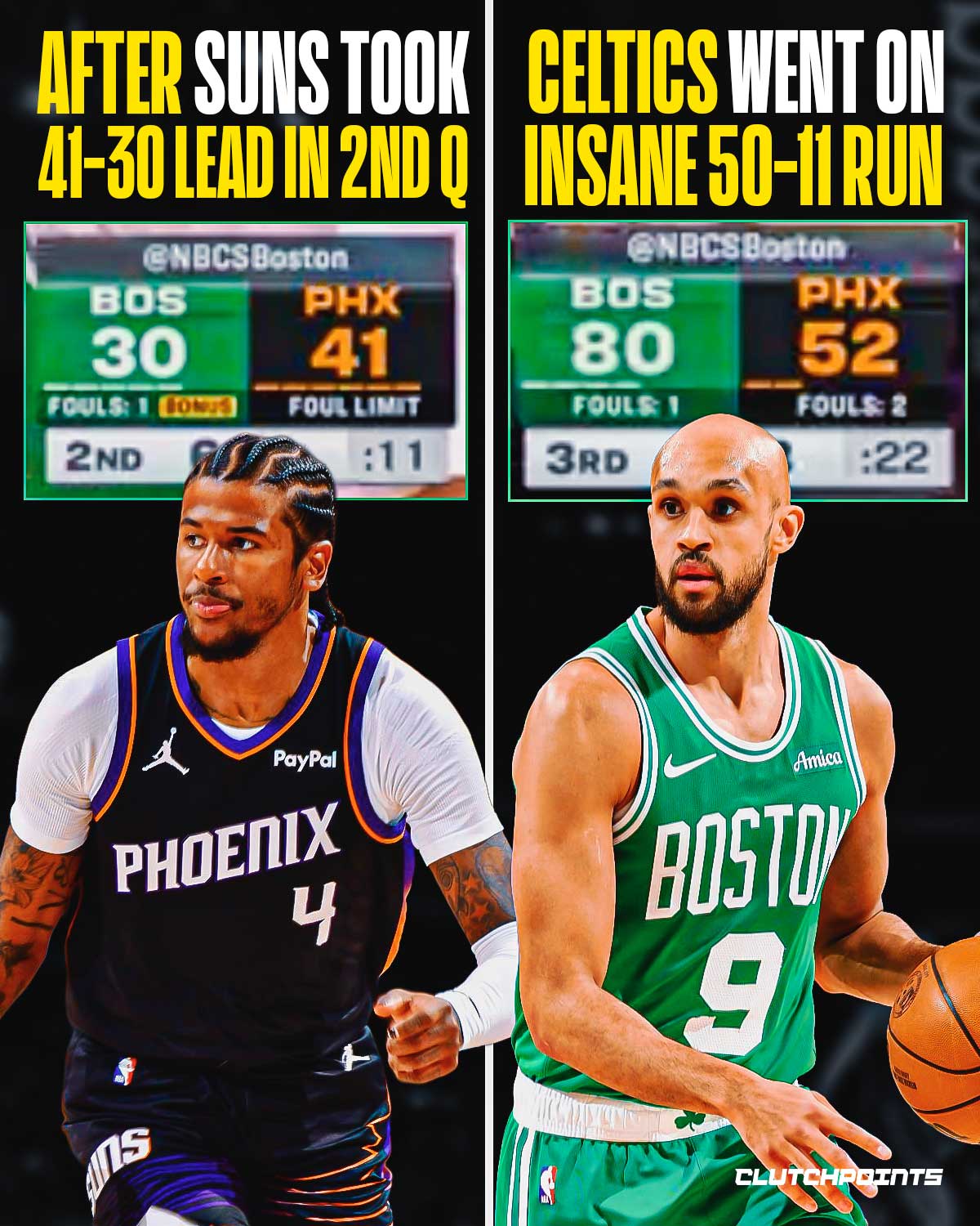 In the third quarter alone, Boston outscored Phoenix 30–11 in their own arena.